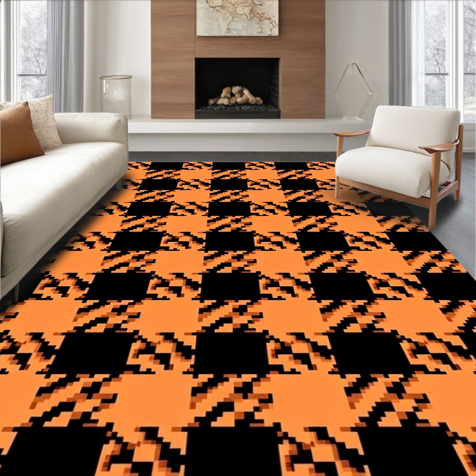 Checkered Harvest Festival with Bold Autumn Grid Design(Orange)