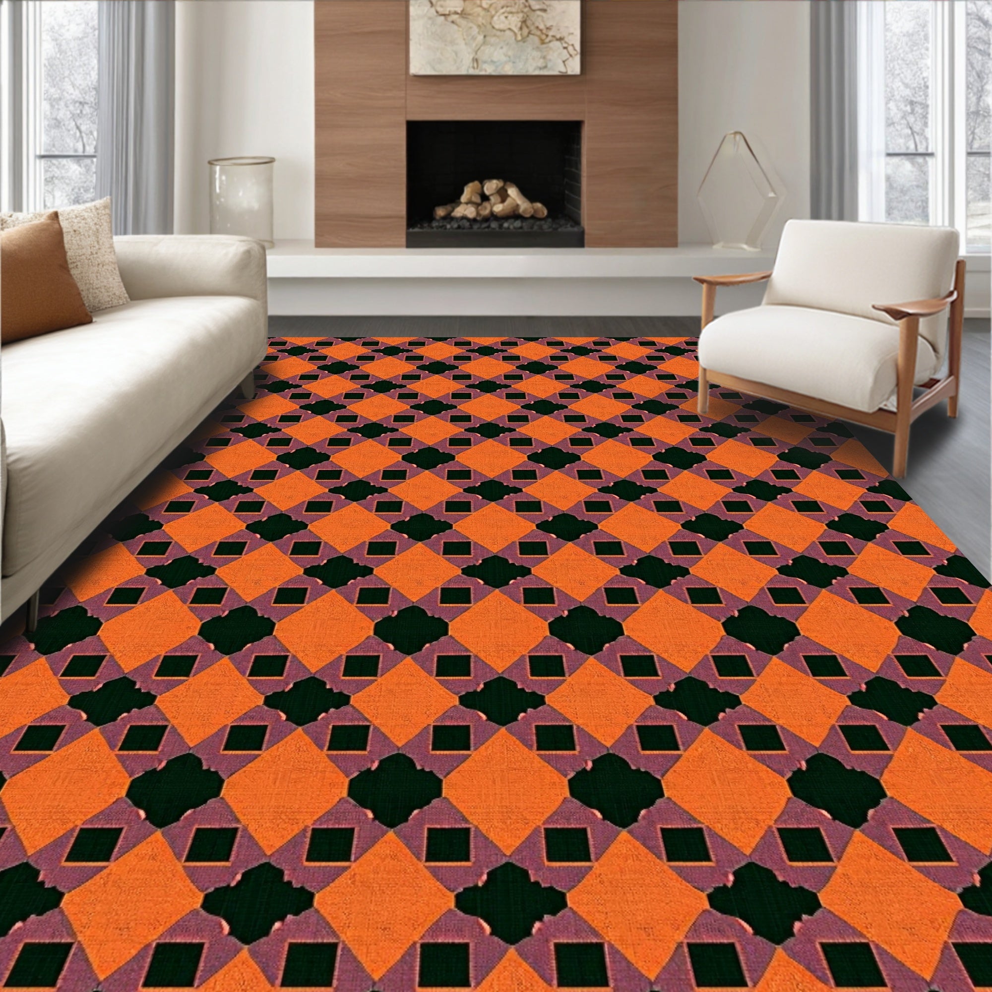 Checkered Grid Area with Intersecting Lines Design(Orange)