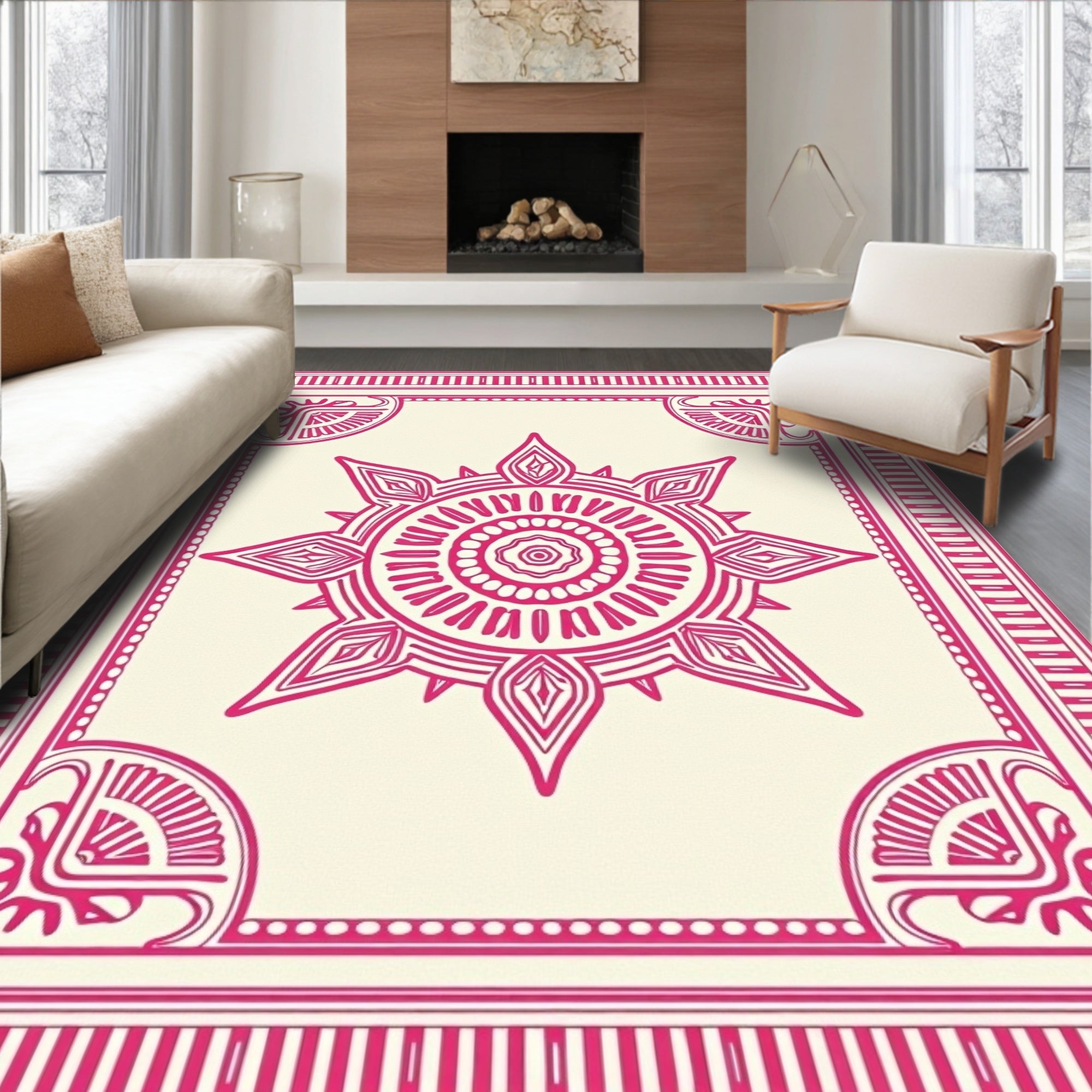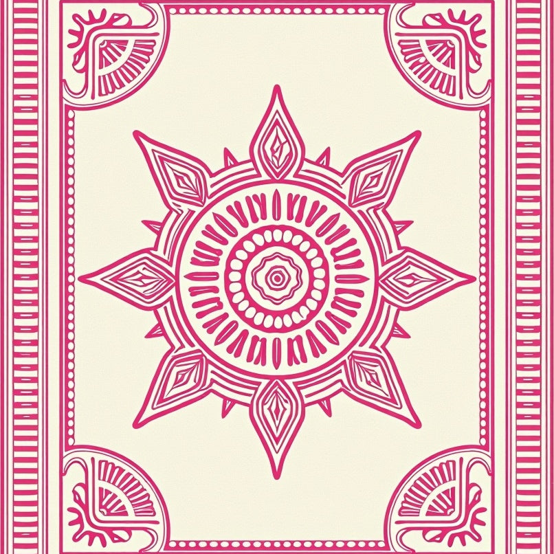 Ancient Aztec Symmetrical Tapestry(Pink)