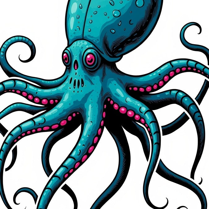 Ancient Undersea Beast Octopus Bones Mythology Art(Blue)