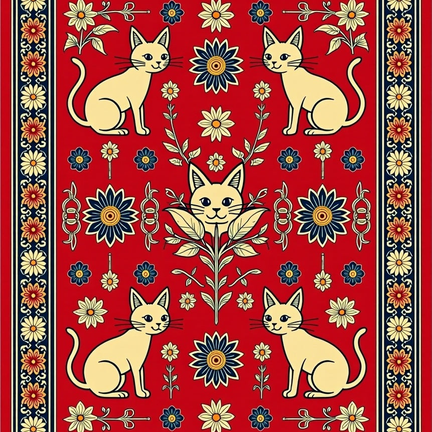 Ancestral Feline Celebration Semicircular Entryway(Red)