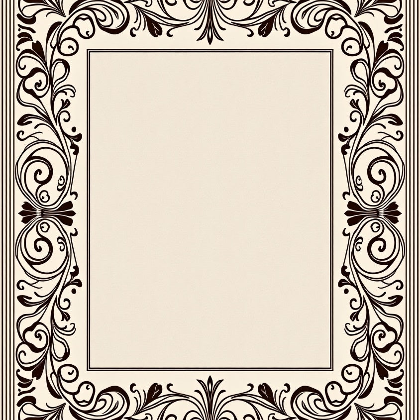 Arabesque Scroll Vine Botanical Flourish Ornamental Border(Black)