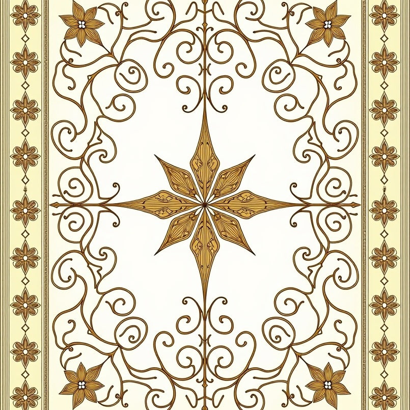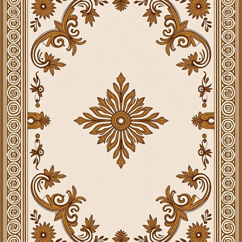 Arabesque Swirl Design with Symmetrical Flourish(Beige)