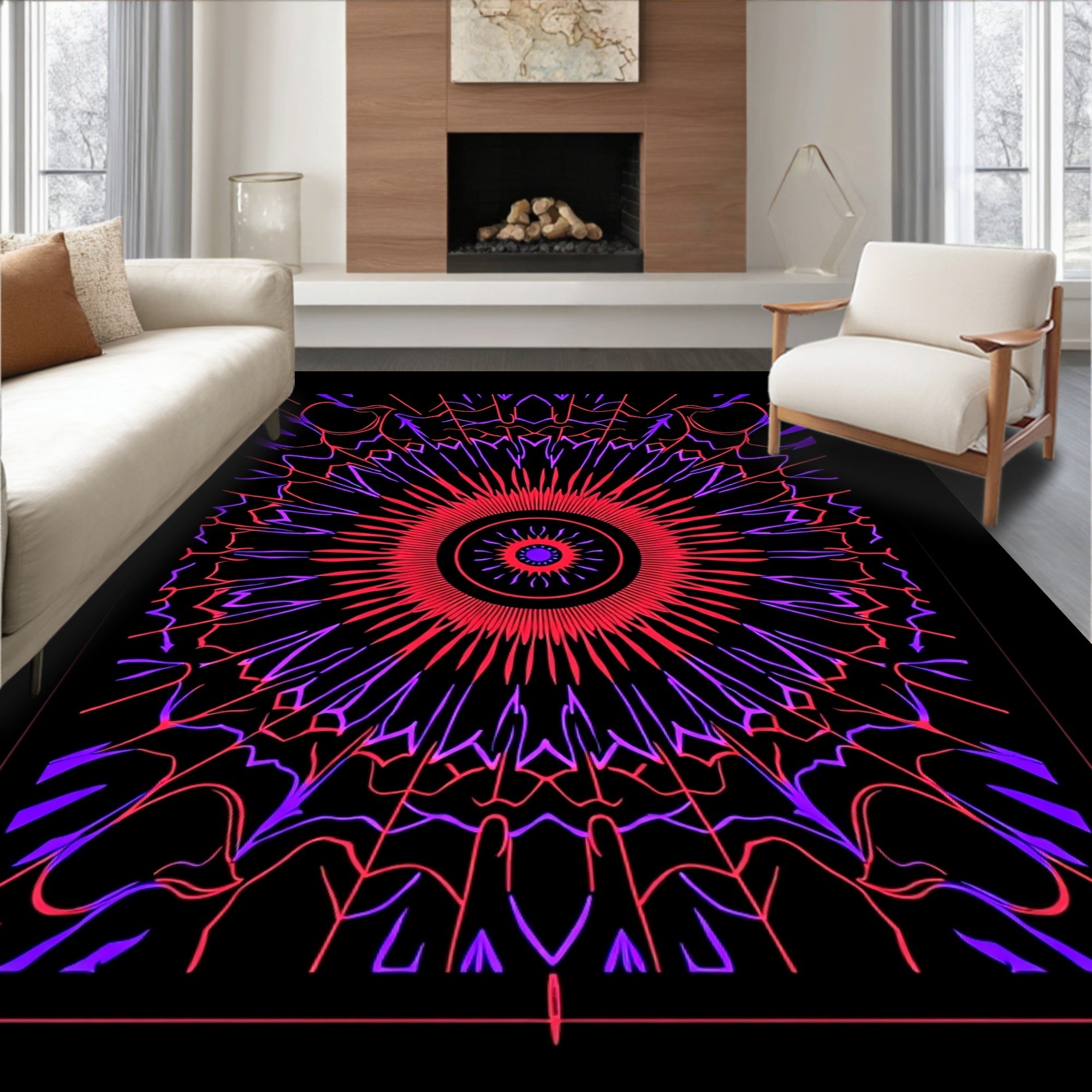 Arachnid Web Circular Floor Decoration Intricate Network(Black)