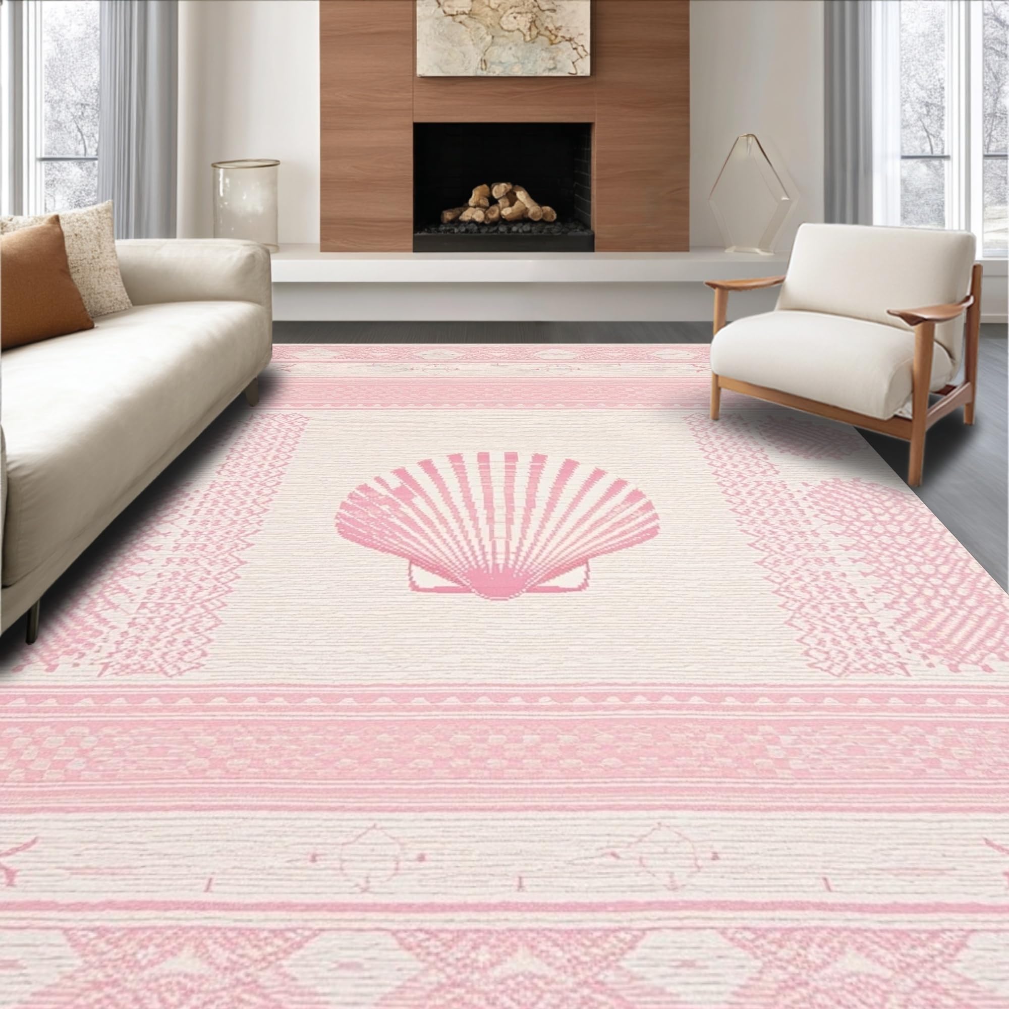 Contemporary Pink and Ivory Area Featuring Fluid Marble Veining(Pink)