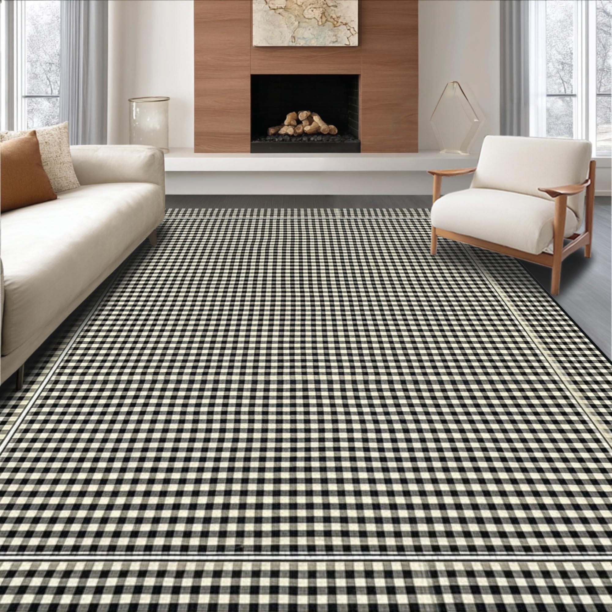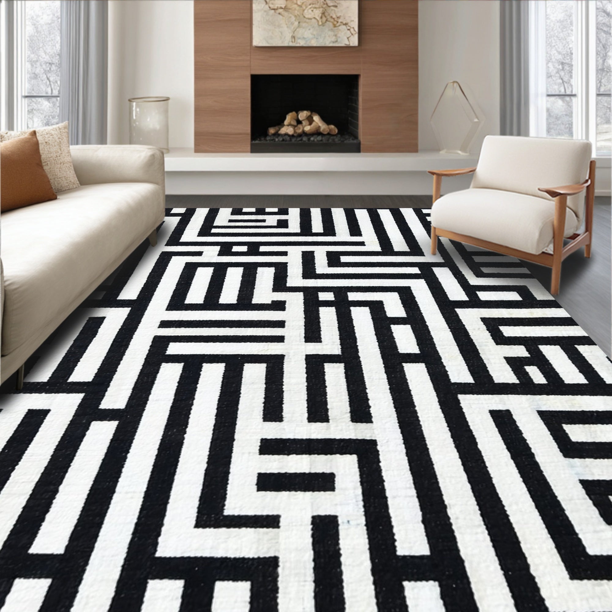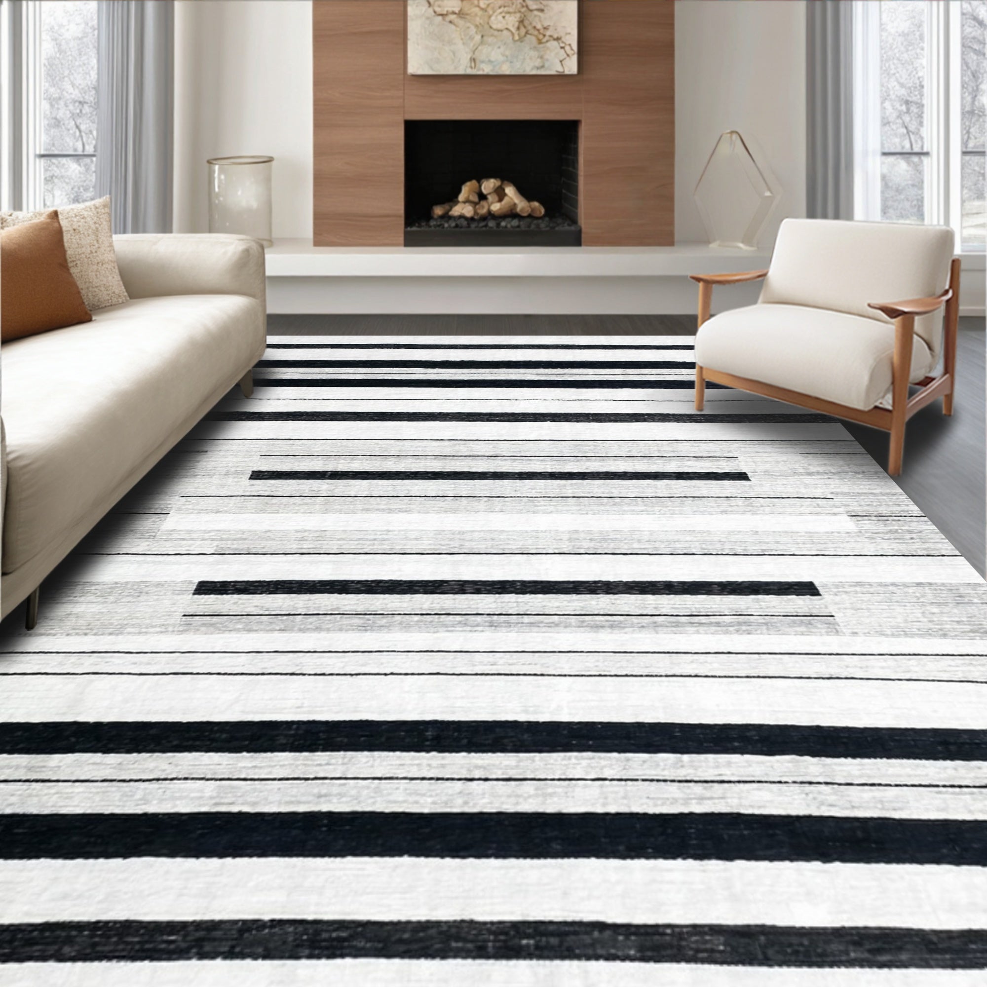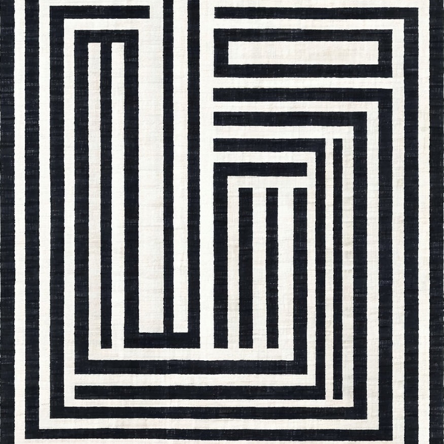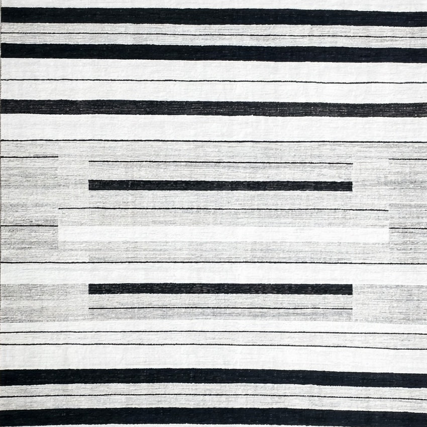 Contemporary Striped Area Black and White Linear Design(Black)