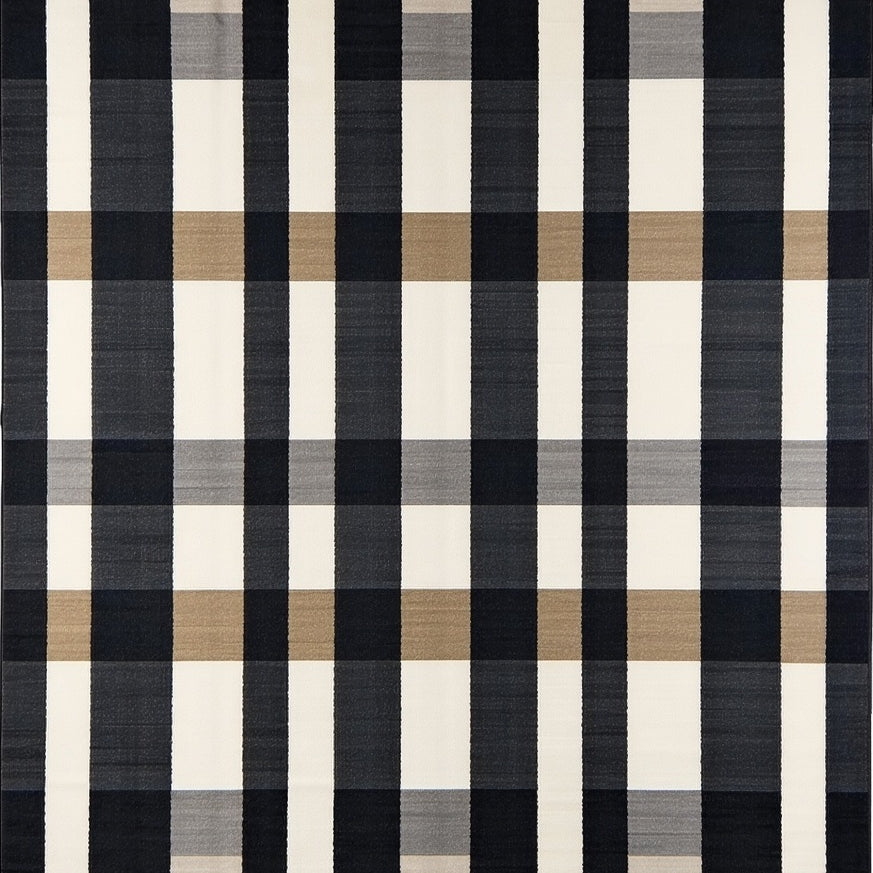 Contemporary Striped Area Bold Black and Beige Graphic(Black)