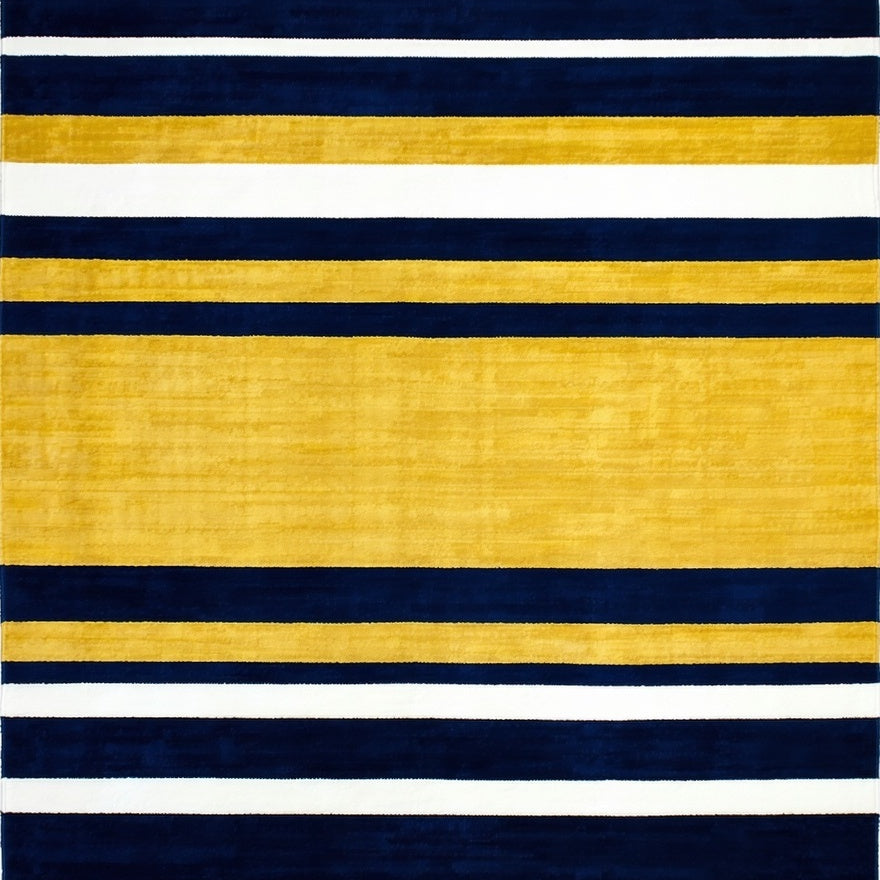 Contemporary Striped Area Rug with Bold Navy and Mustard Yellow Design(Yellow)