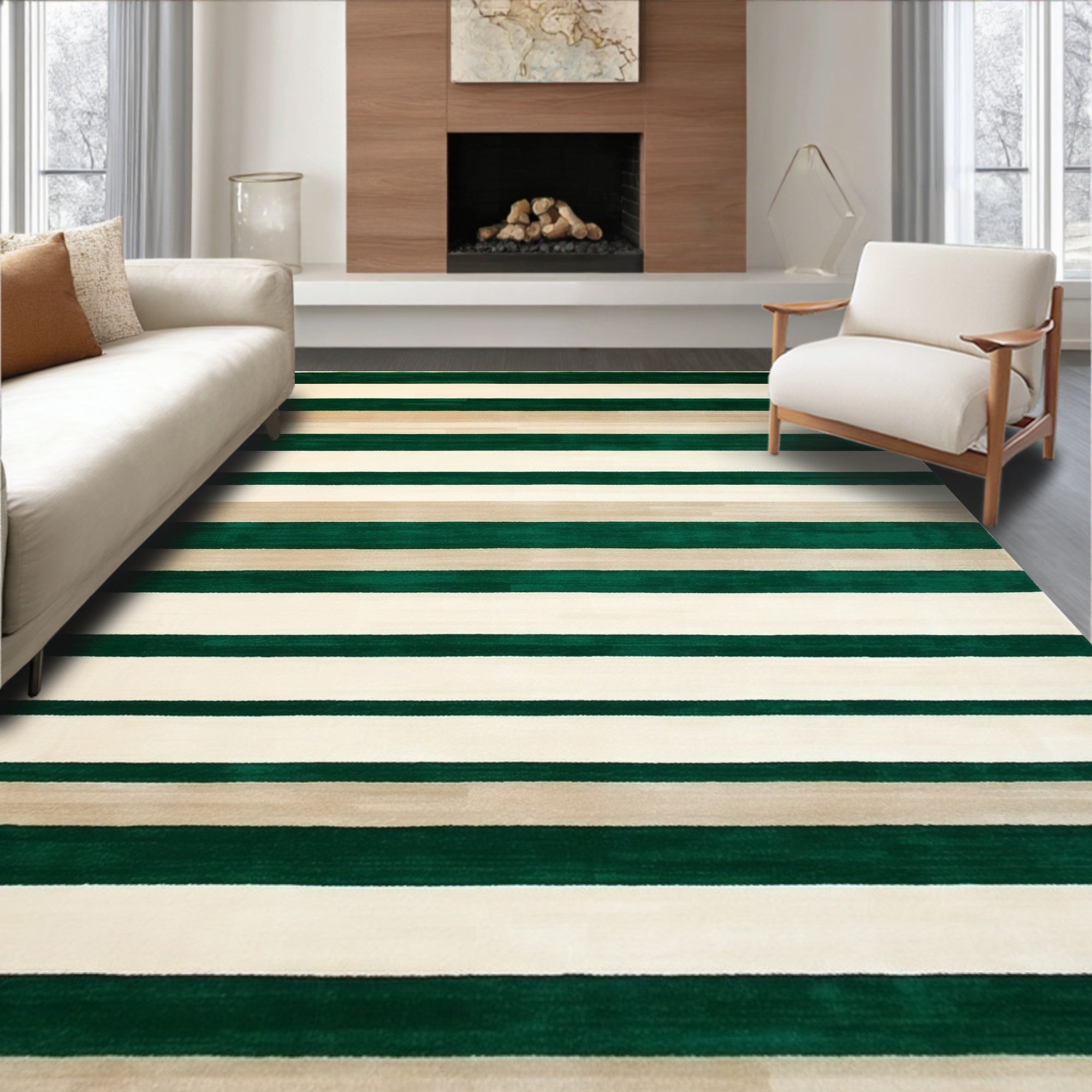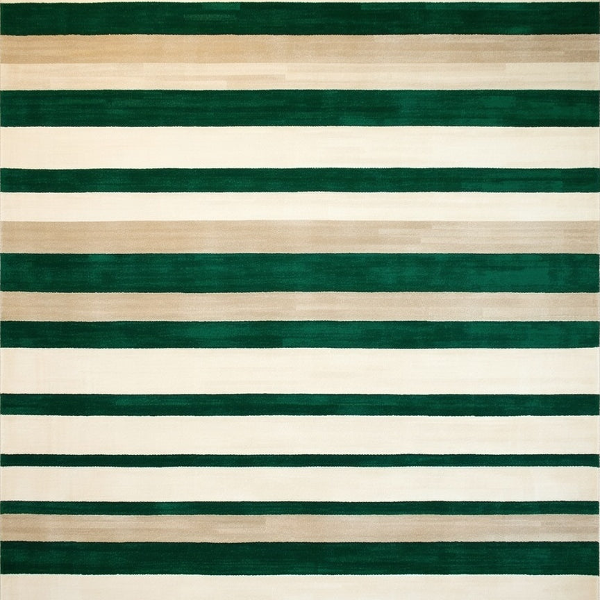Contemporary Striped Area in Rich Beige and Emerald Green Tones(Green)
