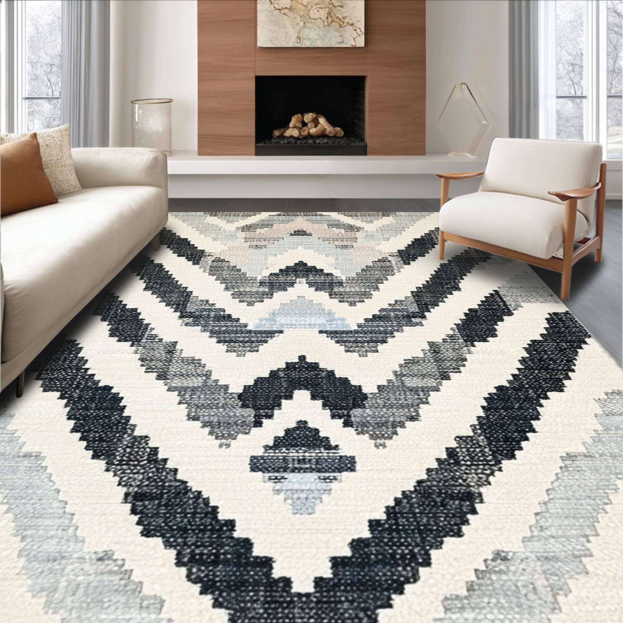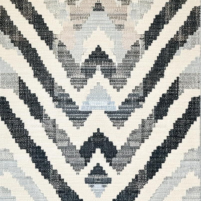 Contrast Weave Black and White Zigzag Patterned(Beige)
