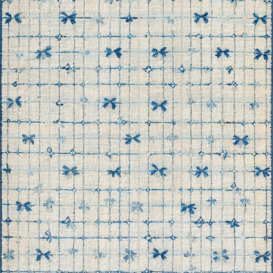 Coquette Aesthetic Blue Bows & Scallops Cute Room Decor(Beige)