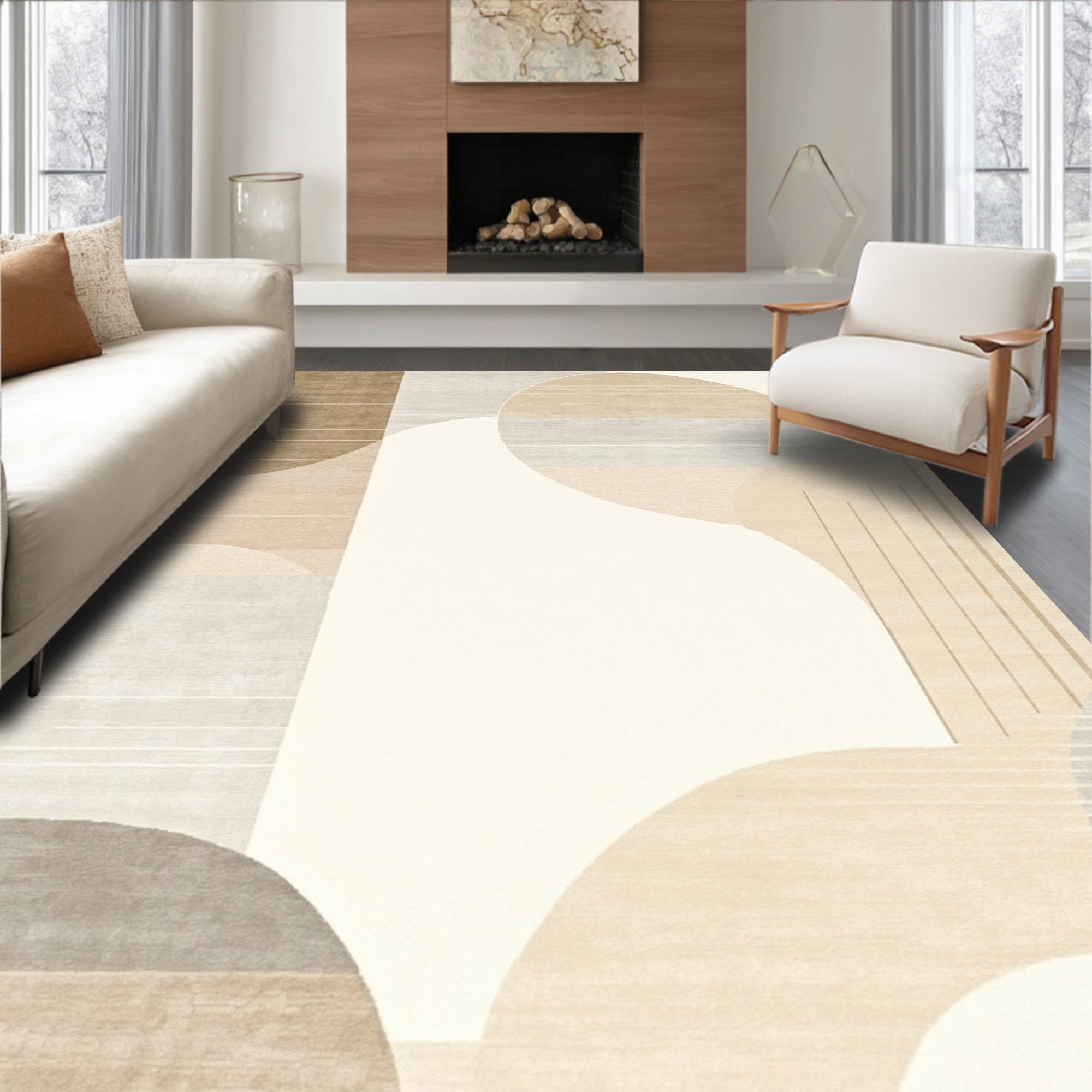 Copper Black Burnt Orange Abstract Washable Area Rug Indoor Floor Mat(Beige)