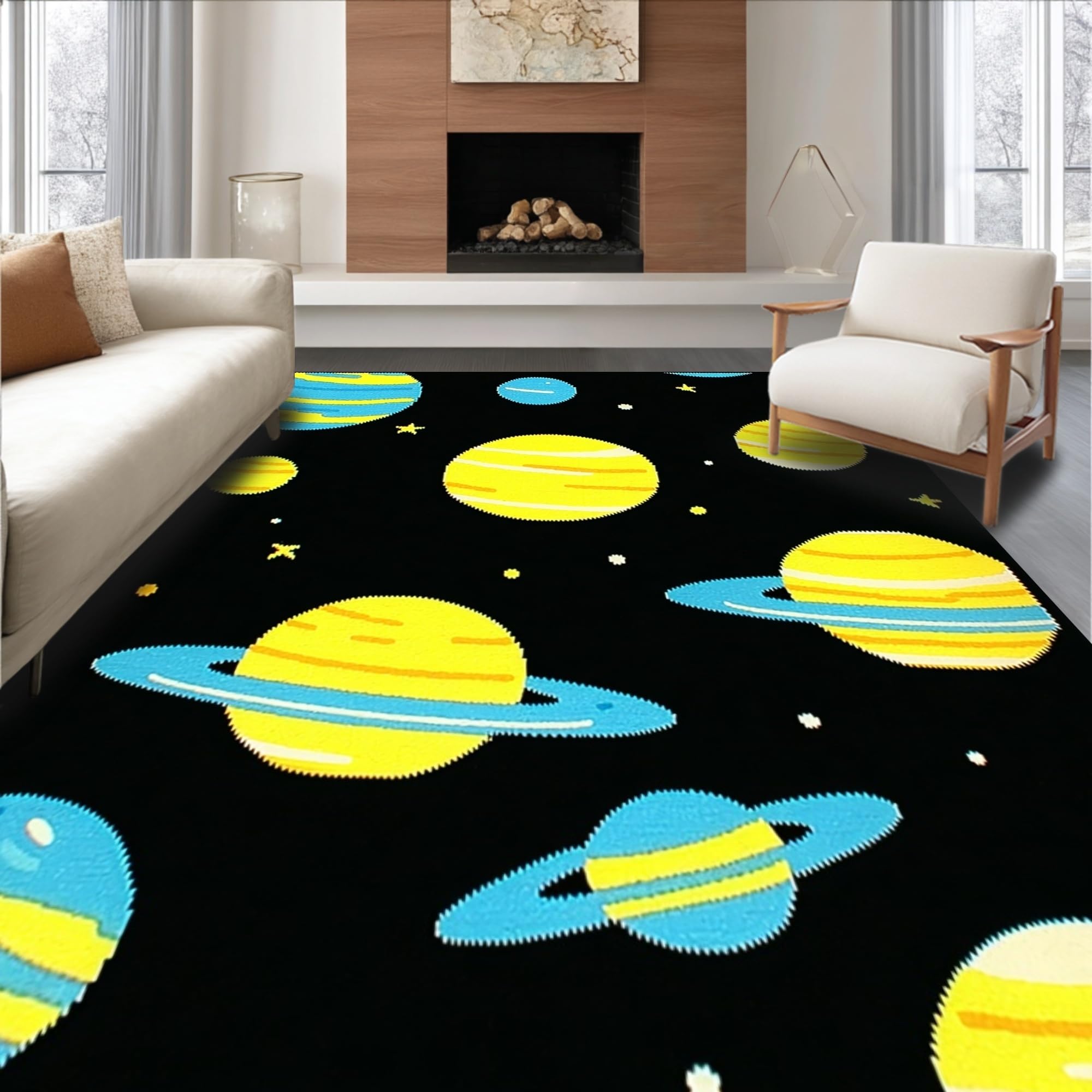 Cosmic Galaxy Adventure Rug Colorful Non Slip Carpet for Play Space(Purple)