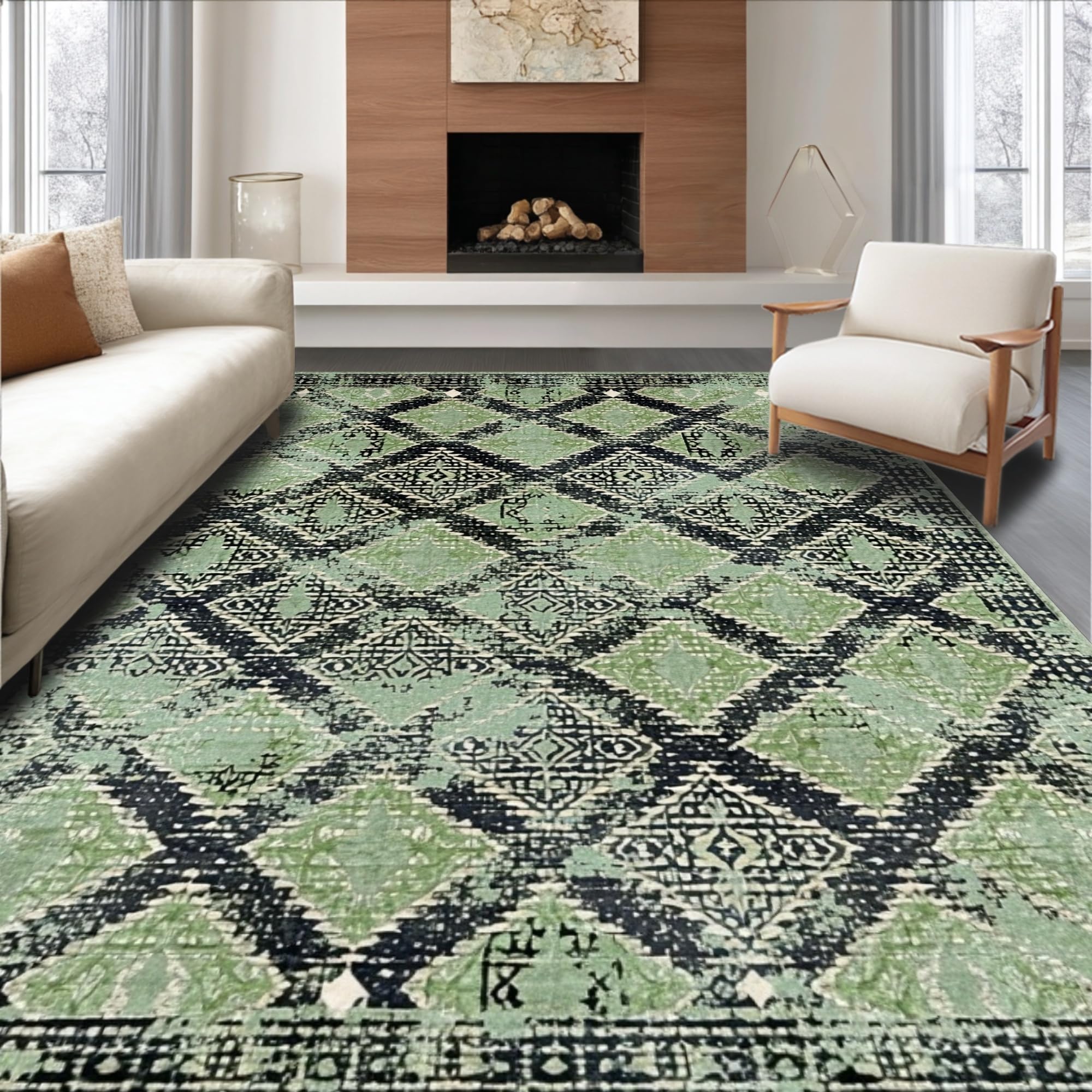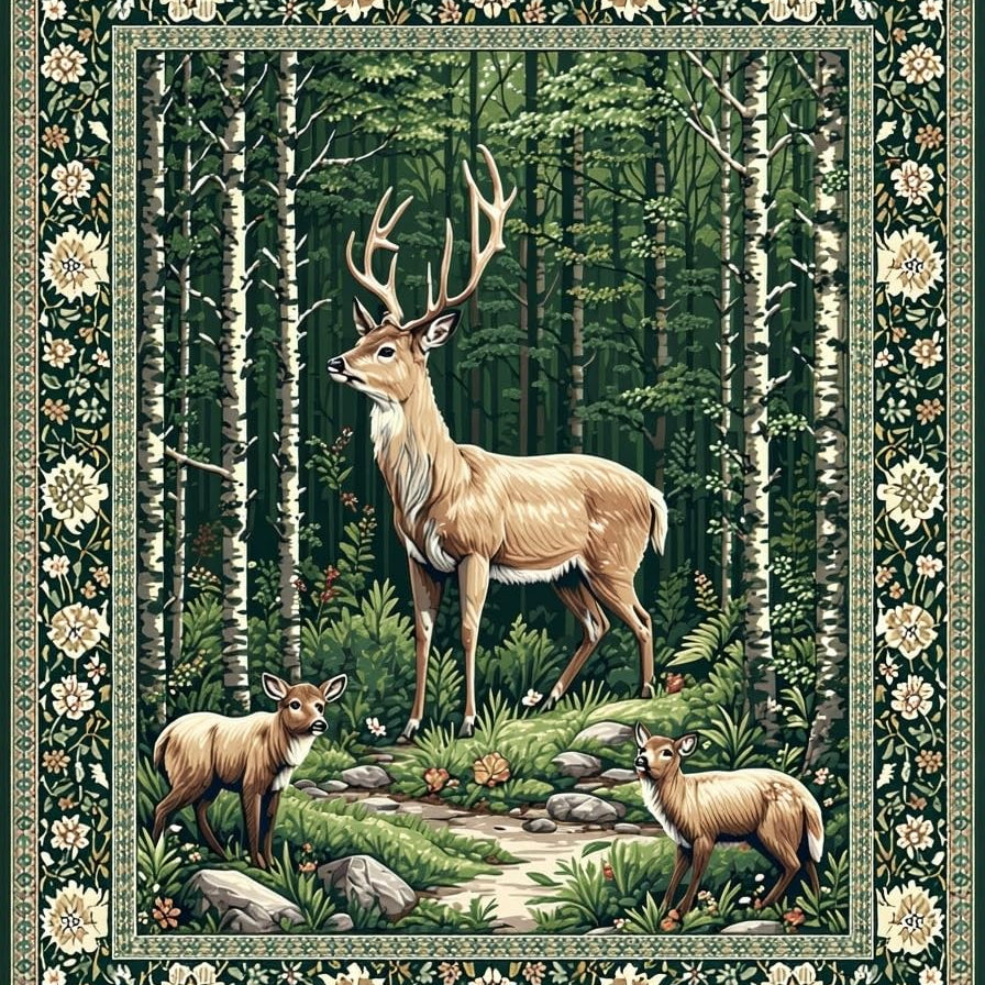 Cozy Low Pile Wilderness Scene(Green)