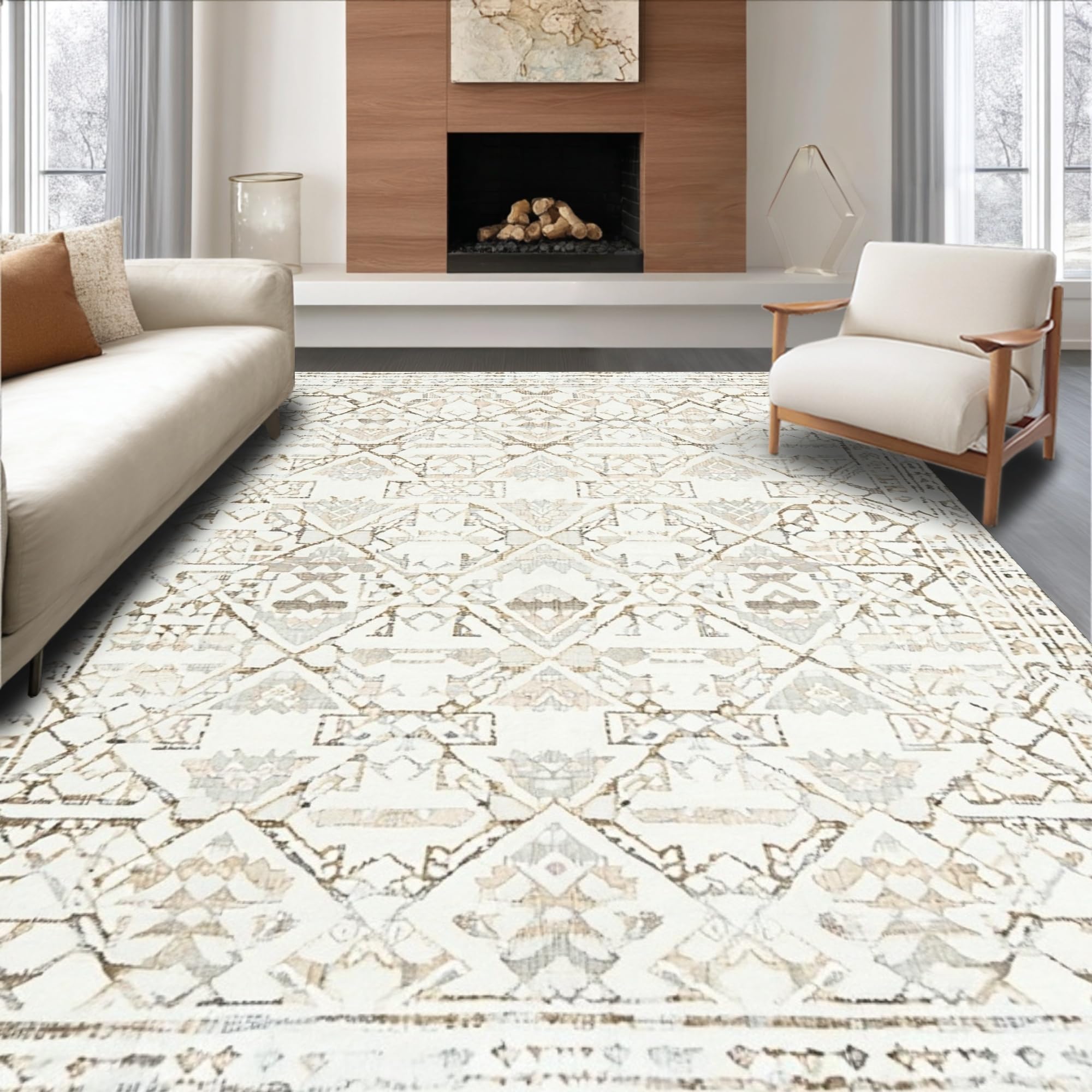 Cozy Low Pile Distressed Texture(Beige)
