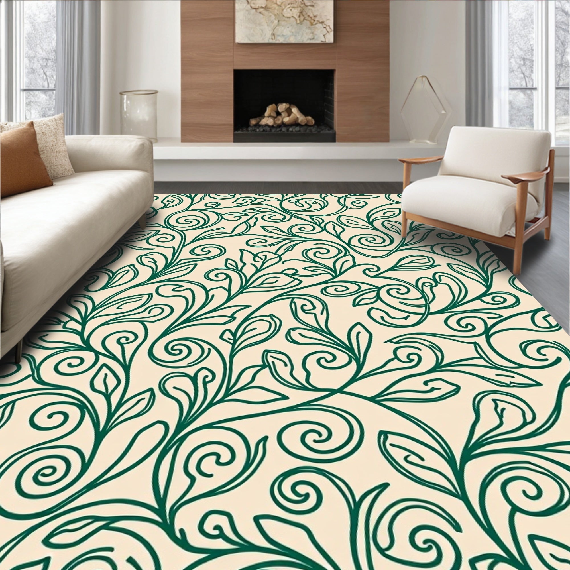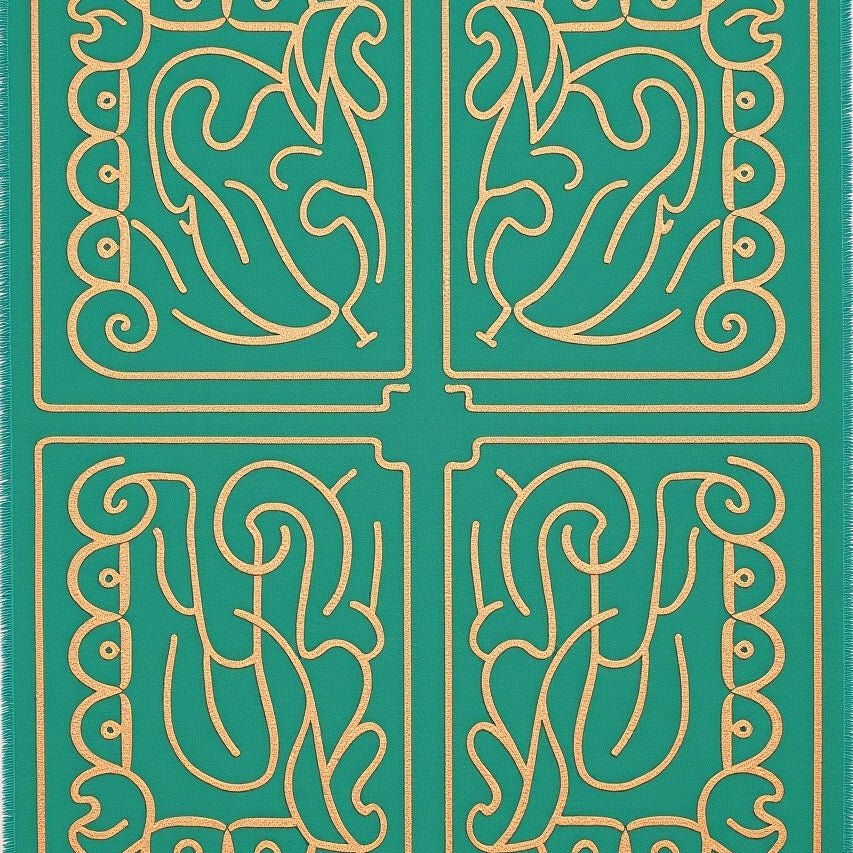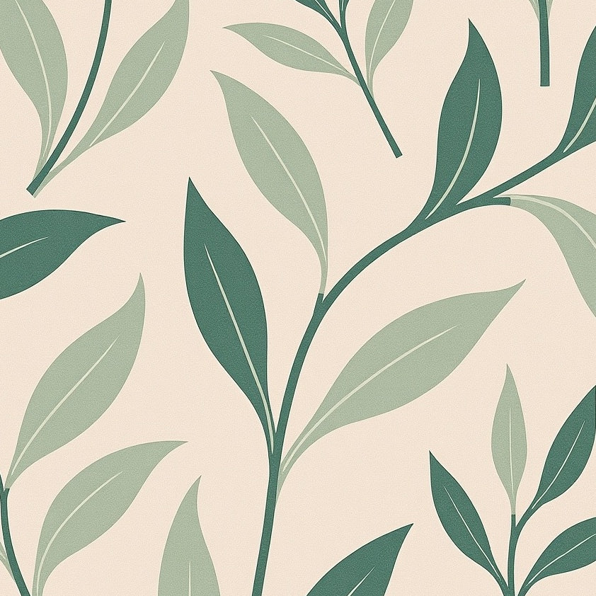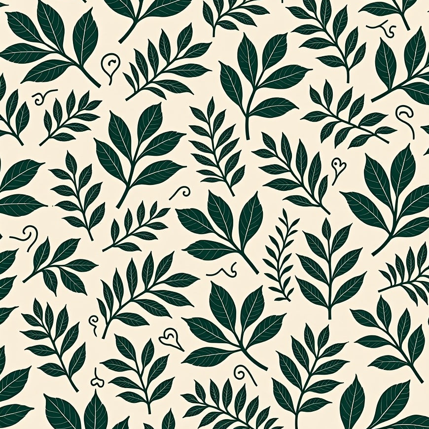 Abstract Botanical Leaf with Flowing Vine Motifs (Green)