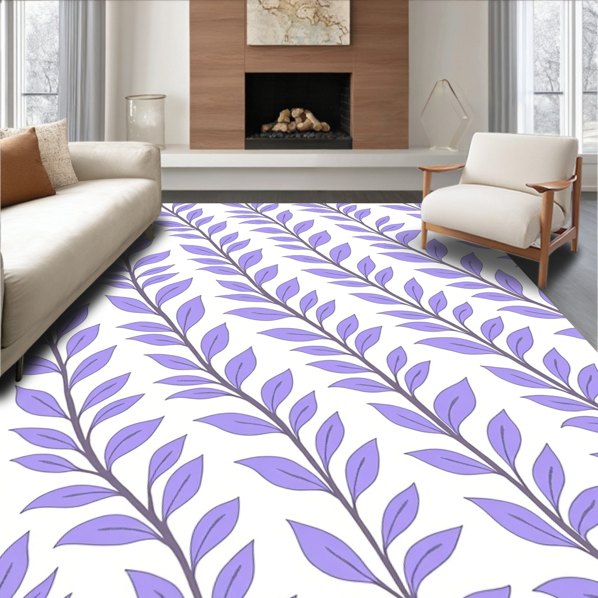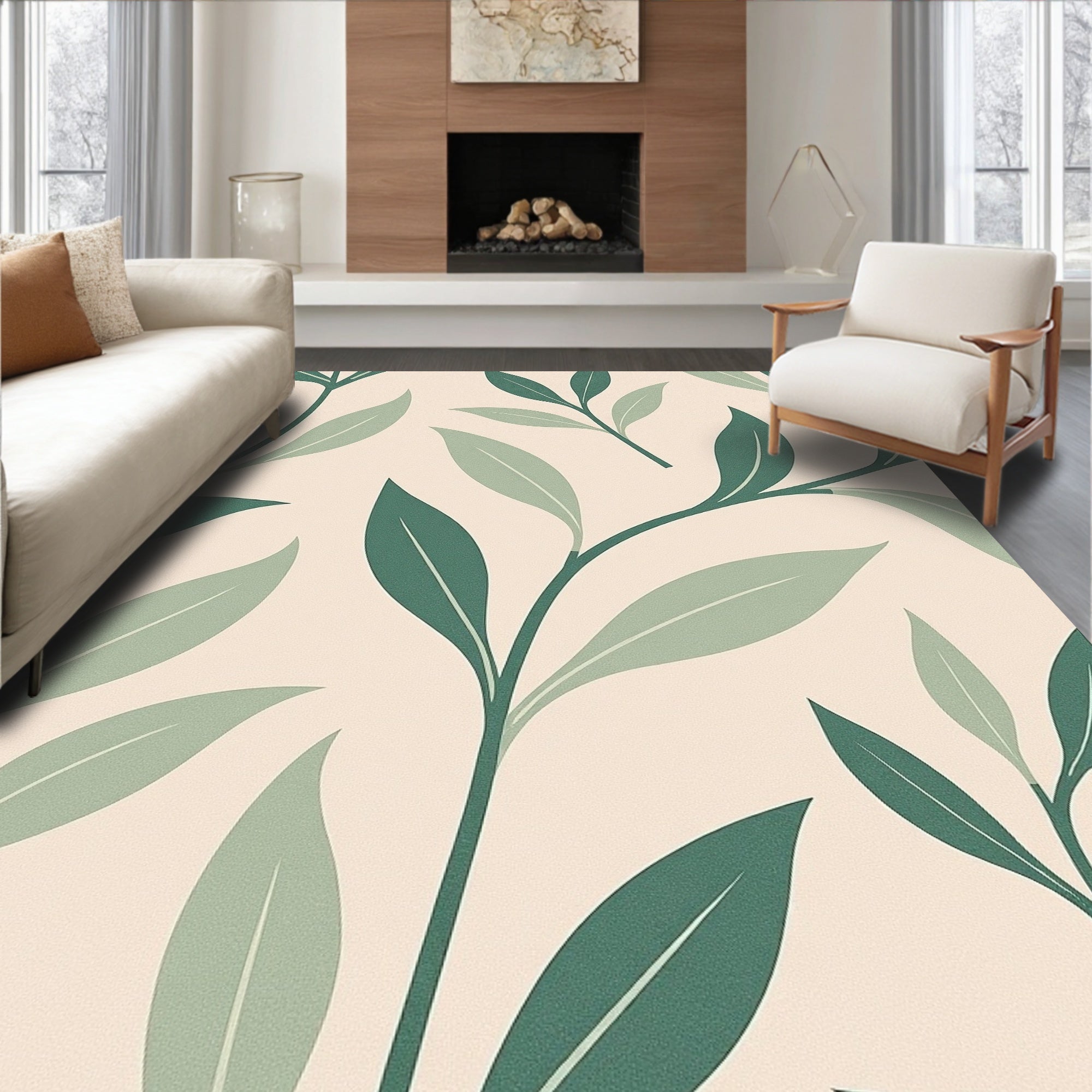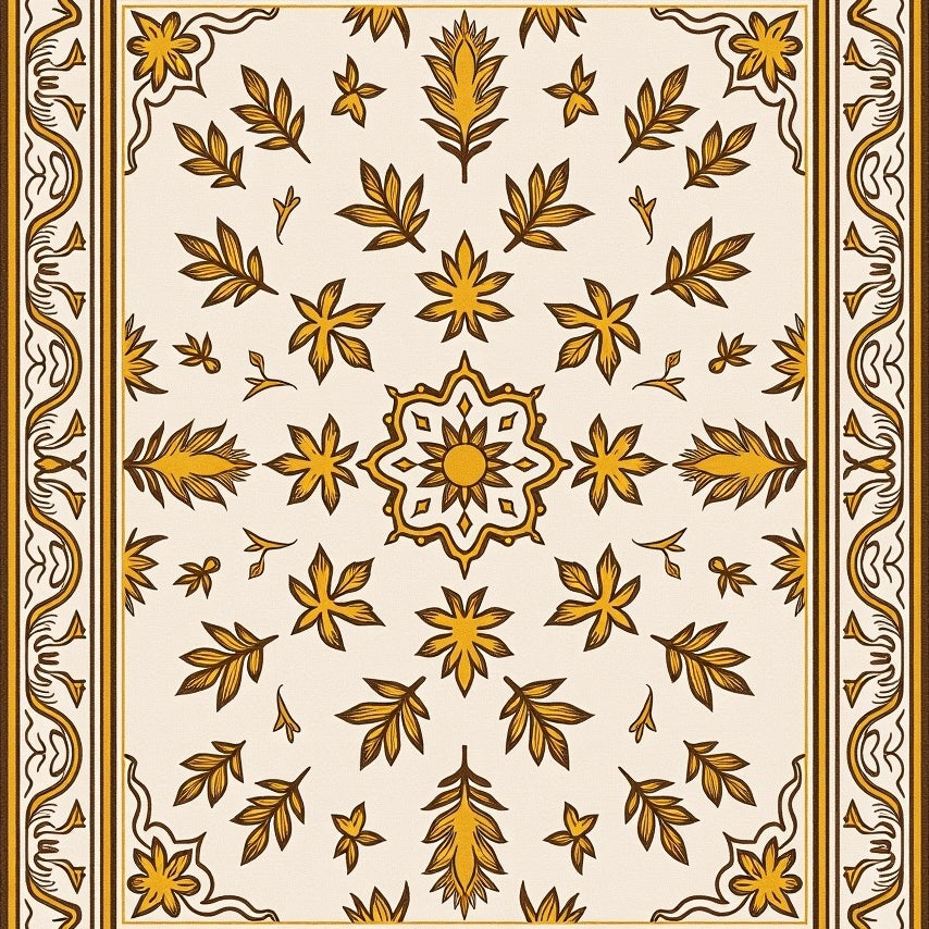 Abstract Botanical Leaf Motif Anti Skid Indoor(Ivory)