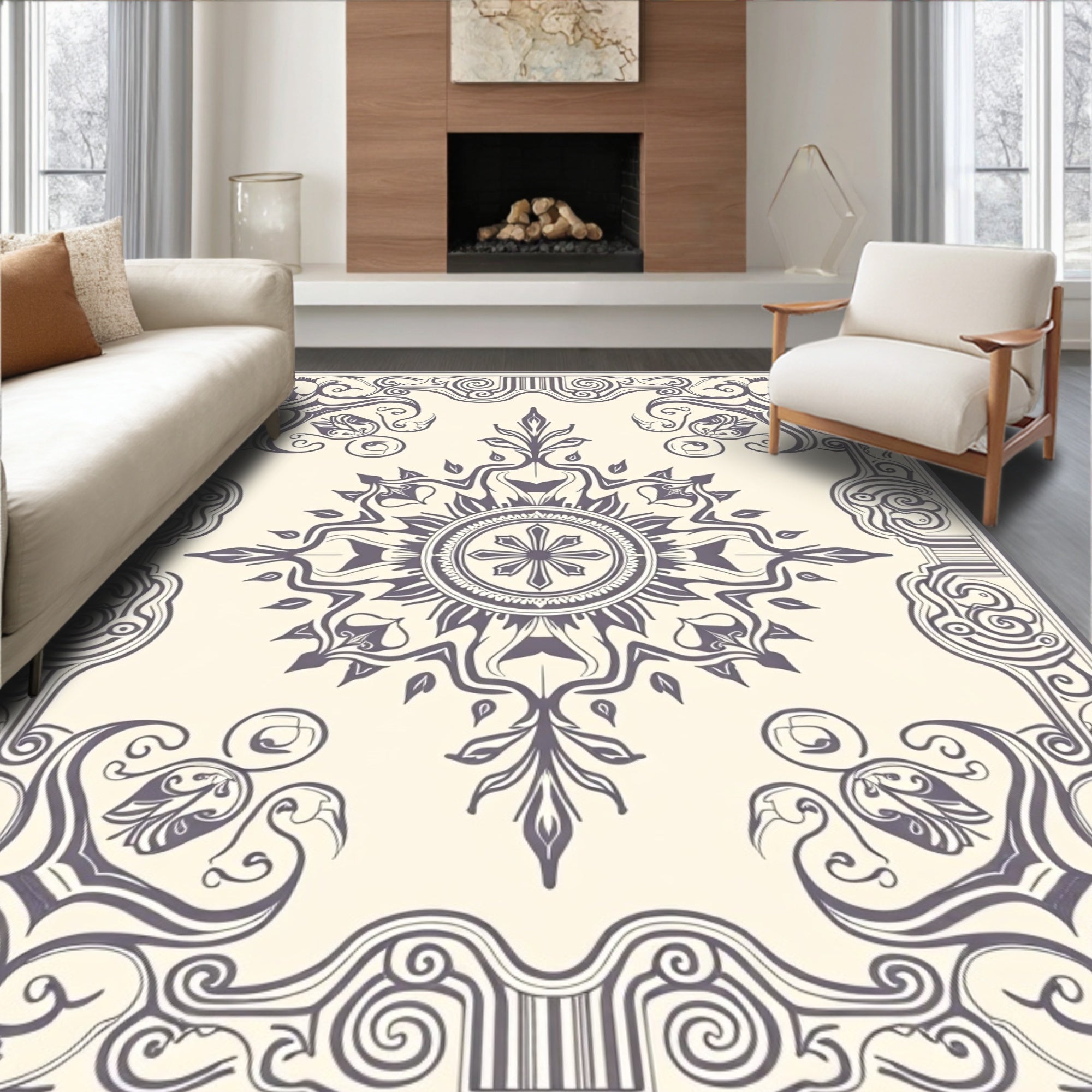 Abstract Boho Medallion and Scrollwork Design(Beige)