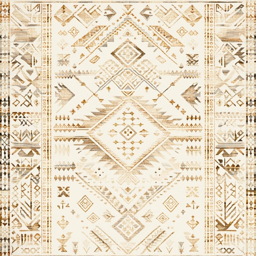 Artisan Crafted Beige & Sand Palette Geometric Distressed Motif(Beige)