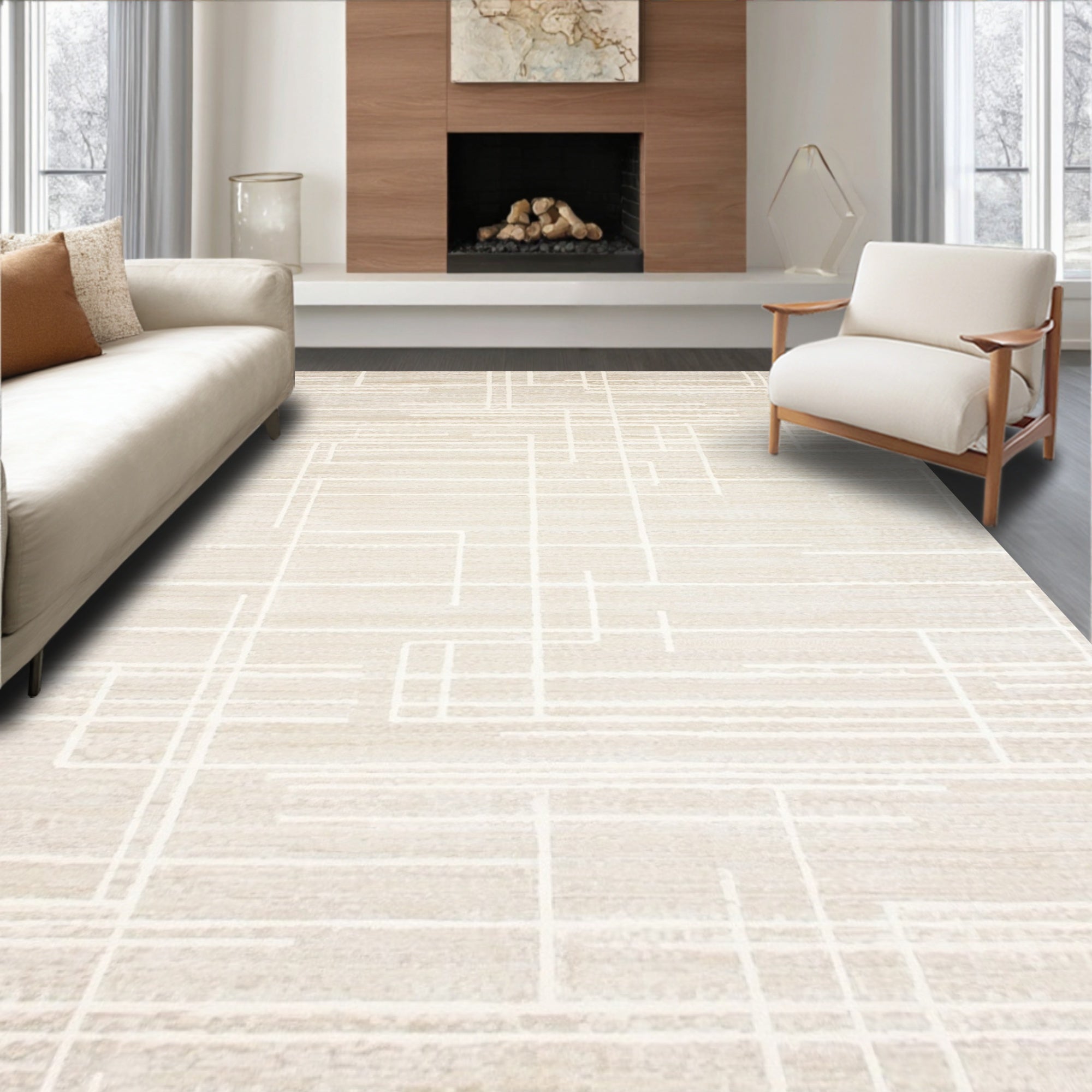 Artisan Crafted Fringe with Subtle Geometric Style(Beige)