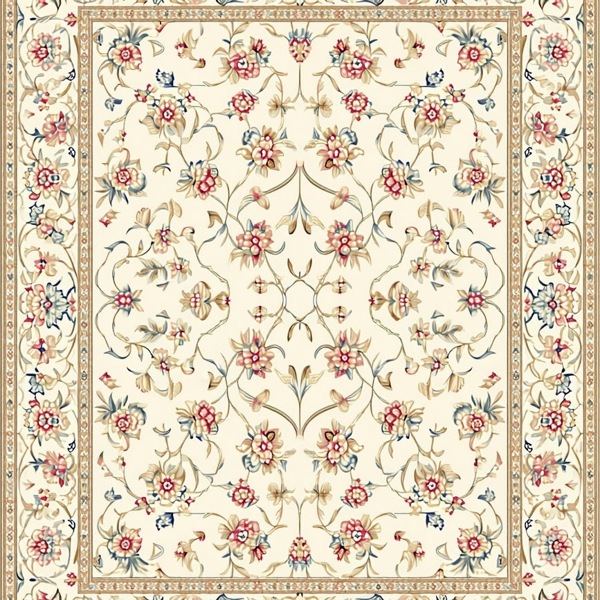 Elegant Floral Area with Beige and Colorful Accents(Ivory)