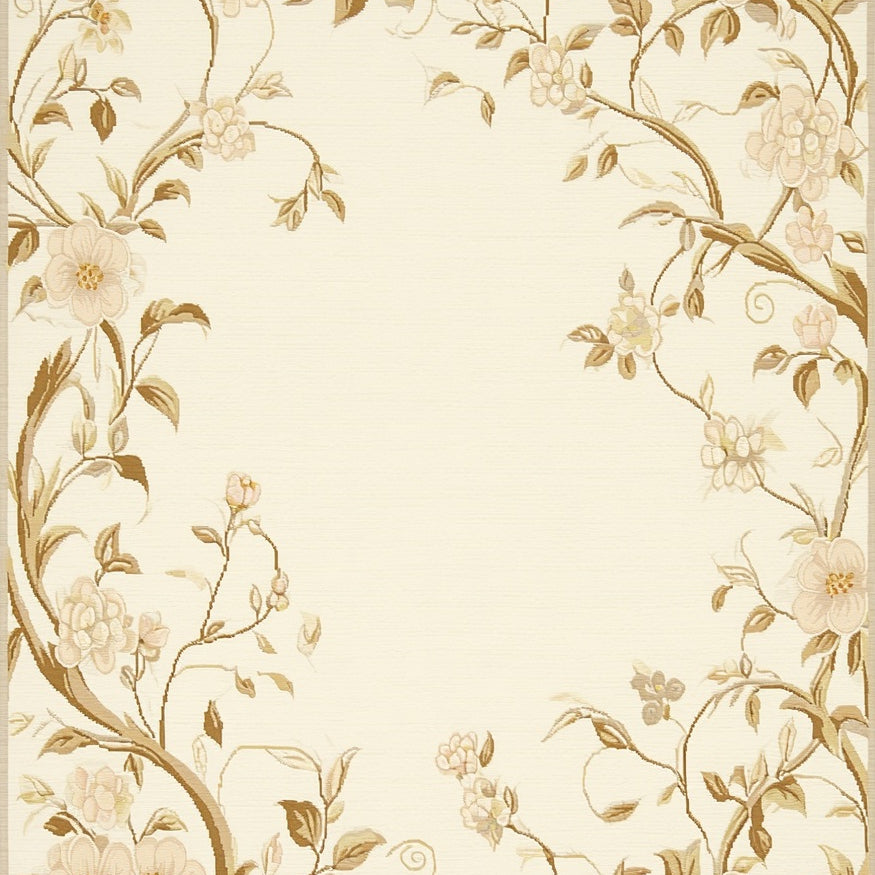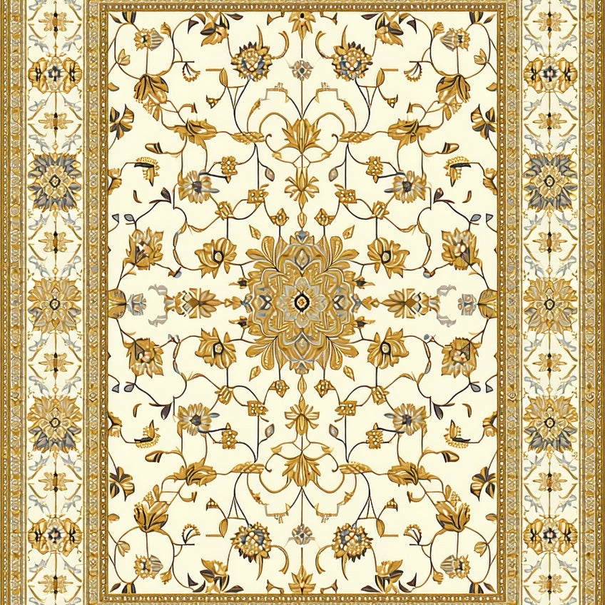 Elegant Floral Area Featuring Gold and Ivory Beige Accents(Beige)