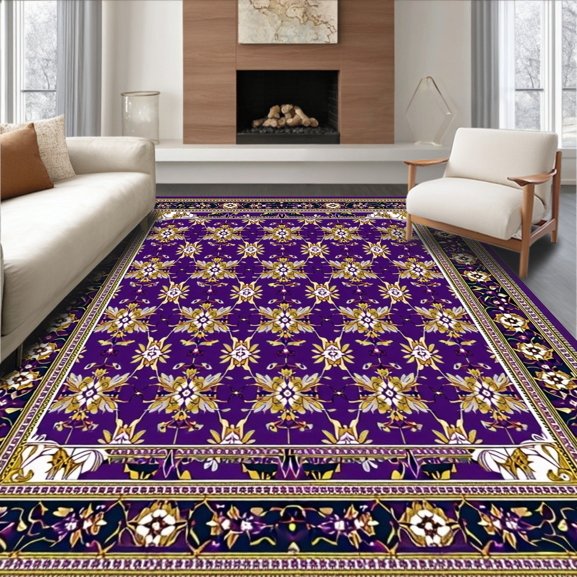 Elegant Floral Area with Purple and Silver Design(Purple)