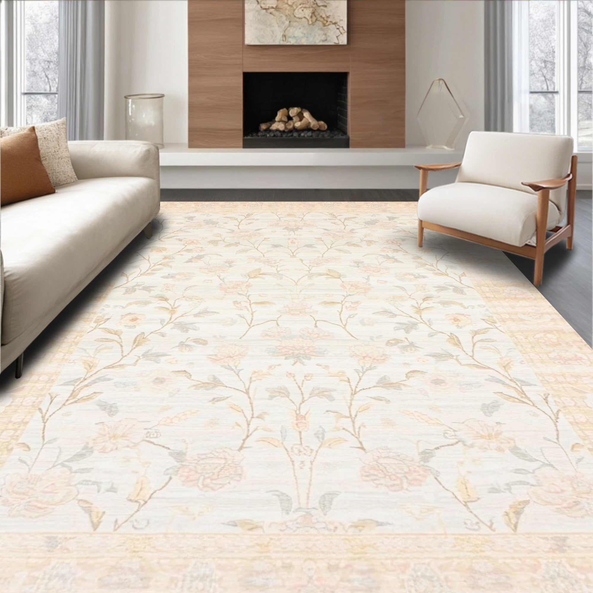Elegant Floral Area Pet & Kid Proof Non Slip(Beige)