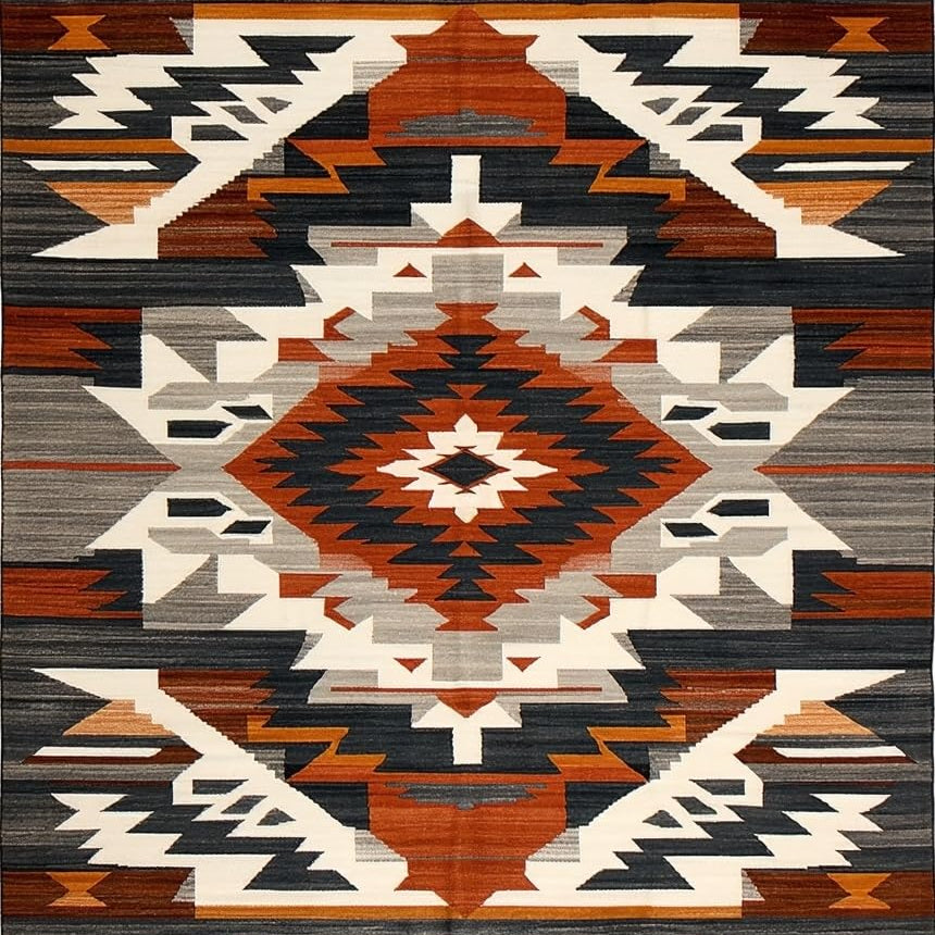 Elegant Geometric Patterned Area with Deep Beige and Gold Accents(Beige)