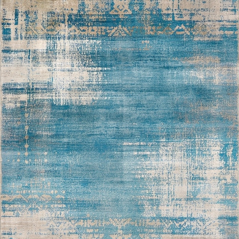 Abstract Distressed Area Over Dyed Vintage Beige Blue(Blue)