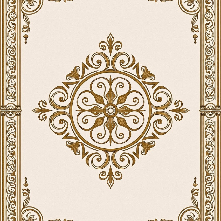 Artisan Spiral Medallion Swirl Vintage Ornate Design(Beige)