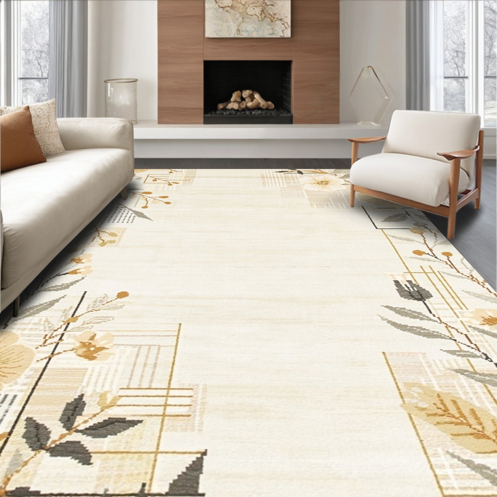 Artisanal Beige Bloom Area Harmonious Floral Scroll(Beige)