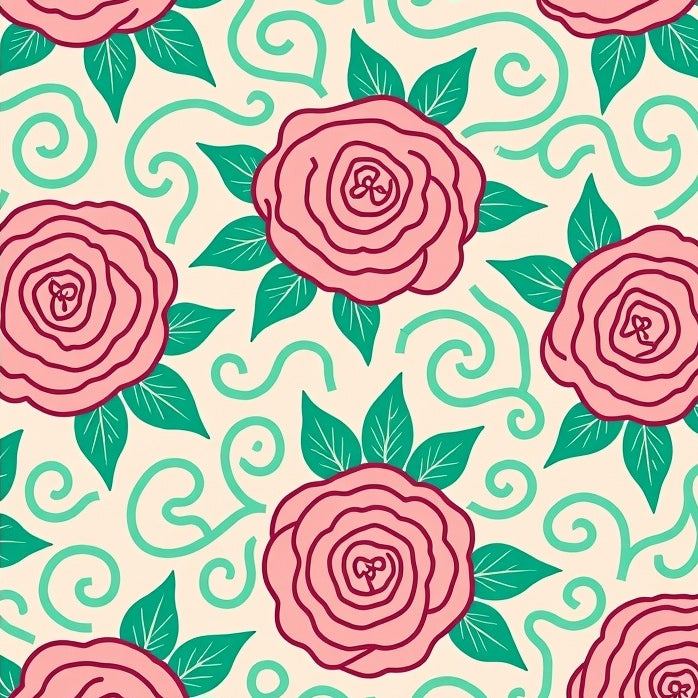 Enchanted Flower Field with Dancing Rose and Hydrangea Motifs(Pink)