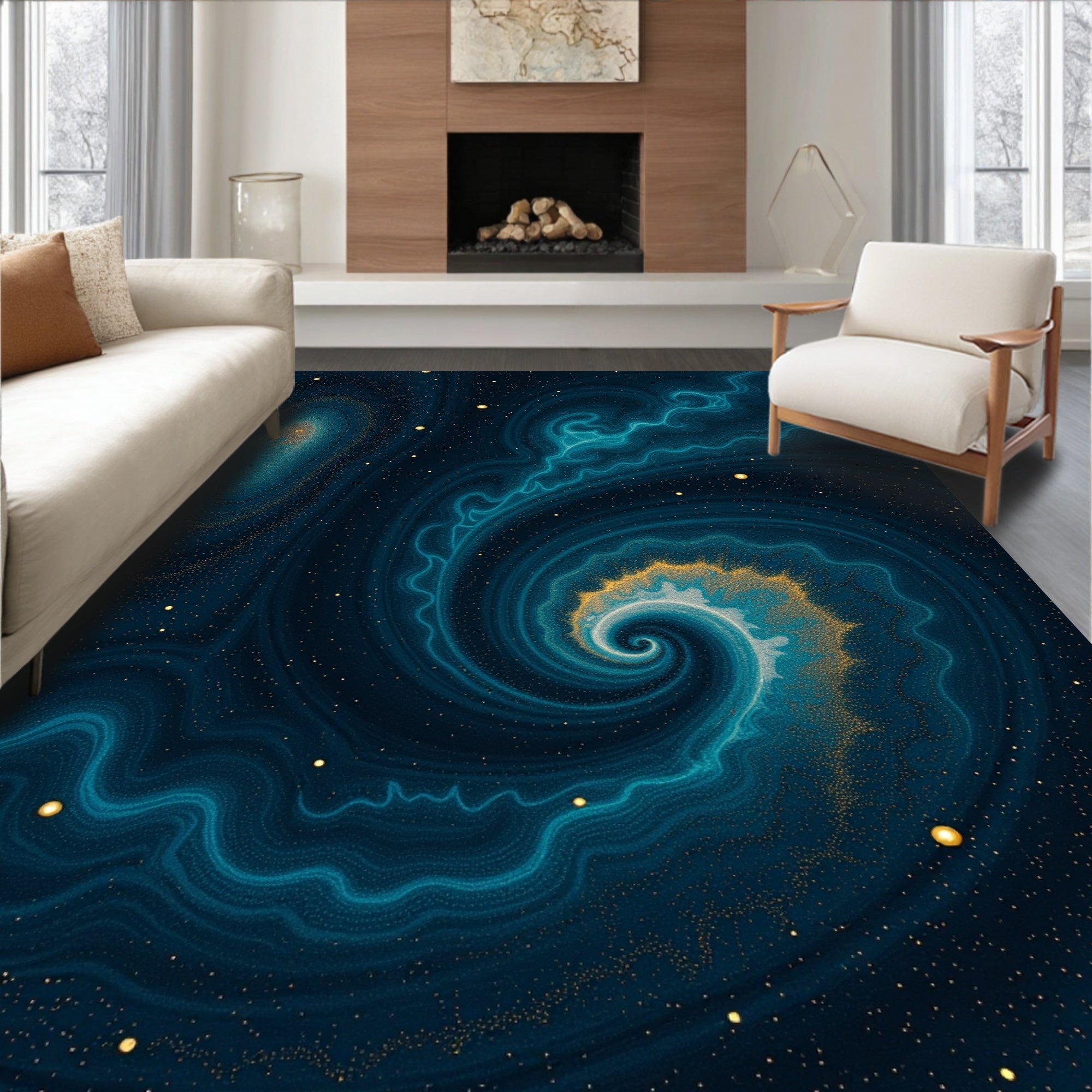 Ethereal Spiral Rug in Semi Circle Shape with Multicolor Galaxy Shades(Blue)