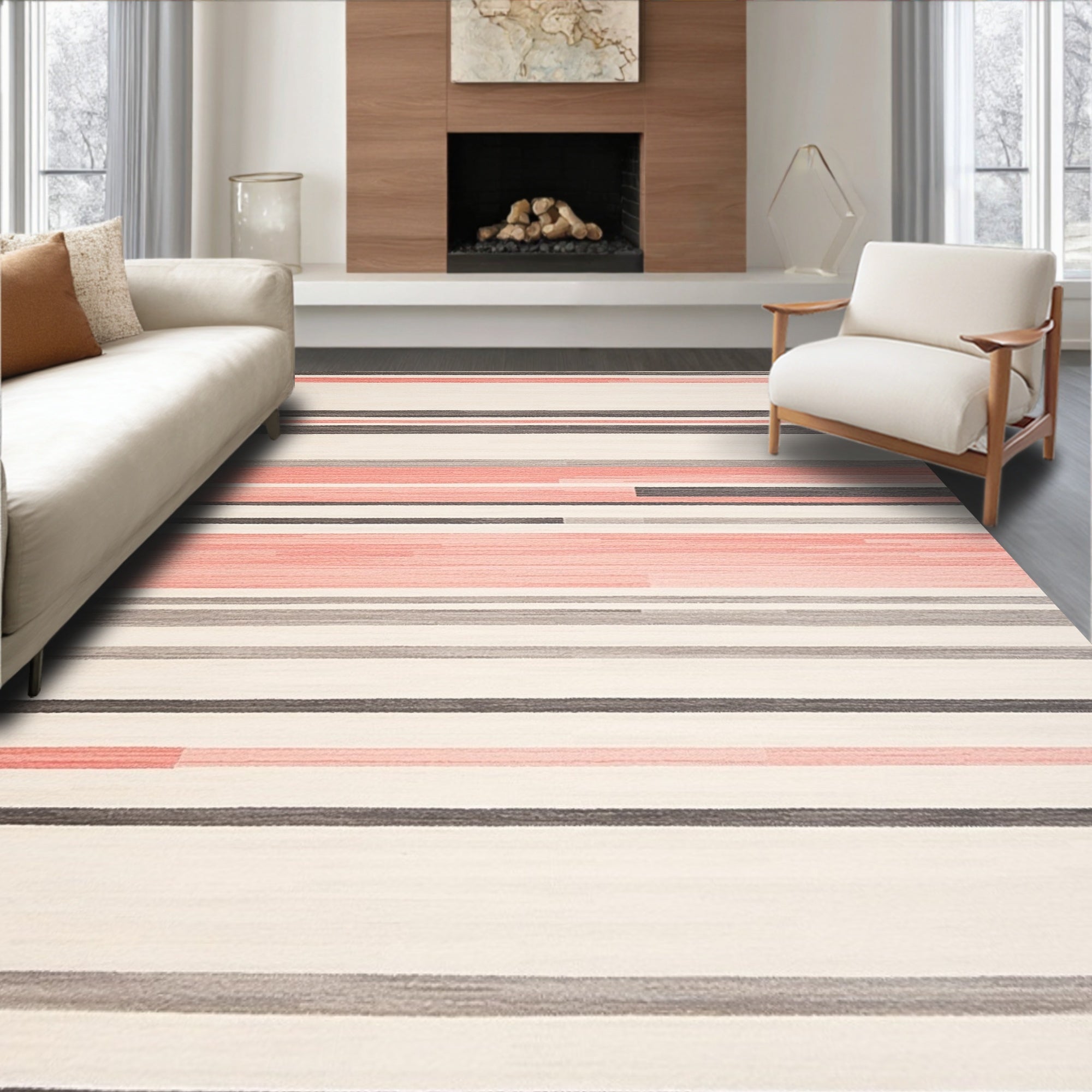 Artistic Abstract Stripe Accent Non Slip(Beige)
