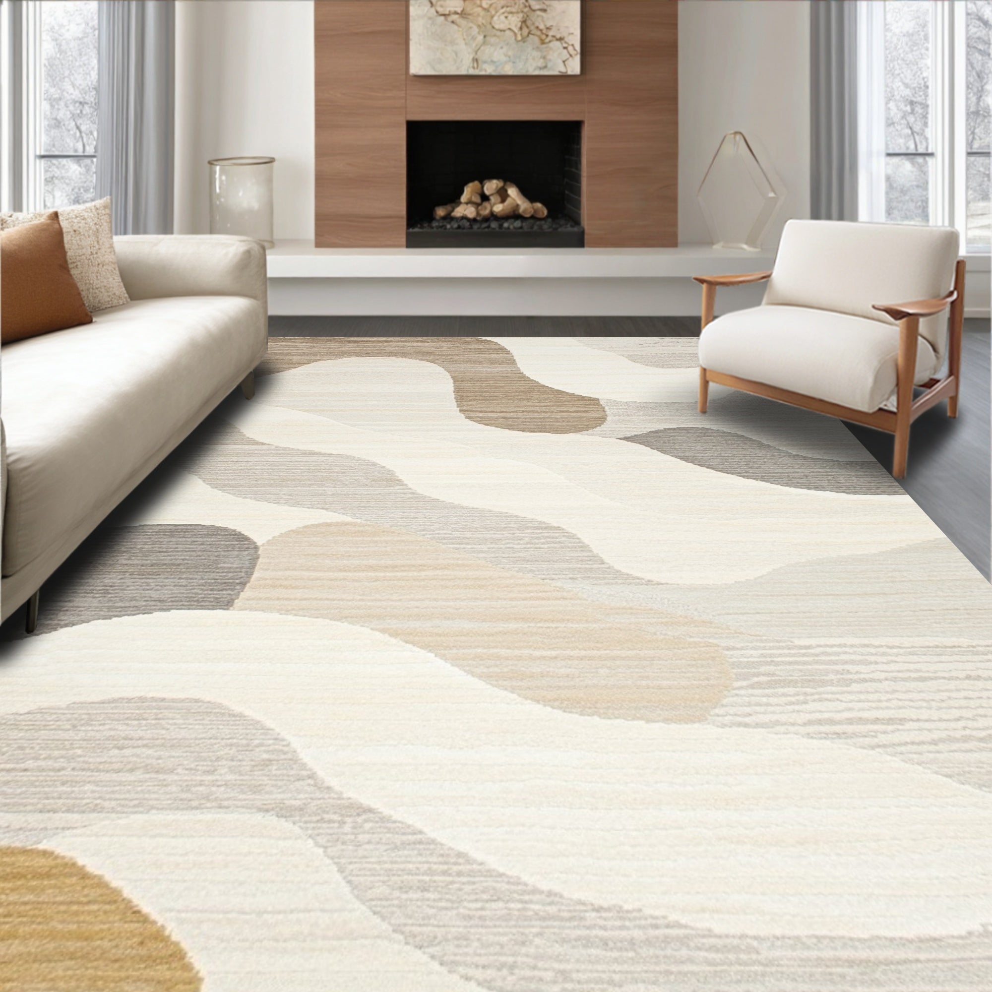 Artistic Area Showcasing Bold Abstract Design in Creamy Tones(Beige)