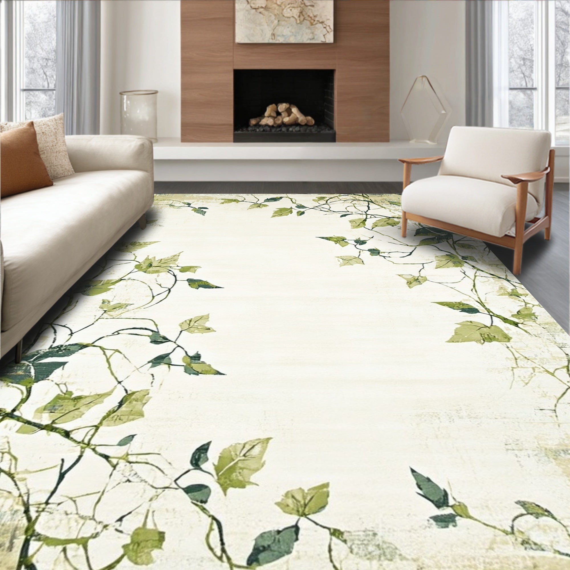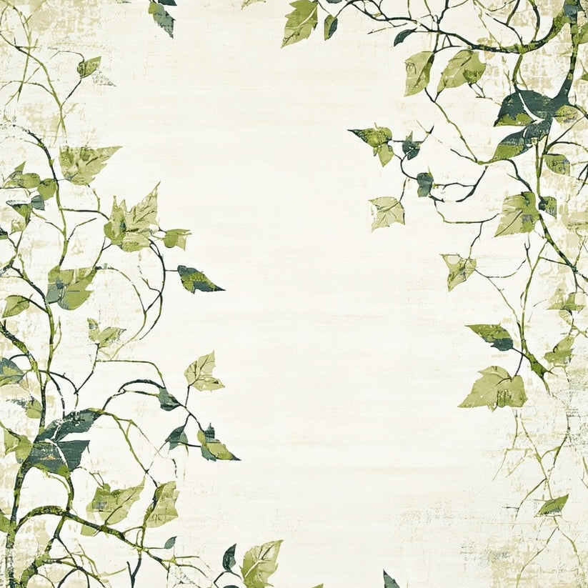 Artistic Distressed Area with Ornate Botanical Design(Beige)