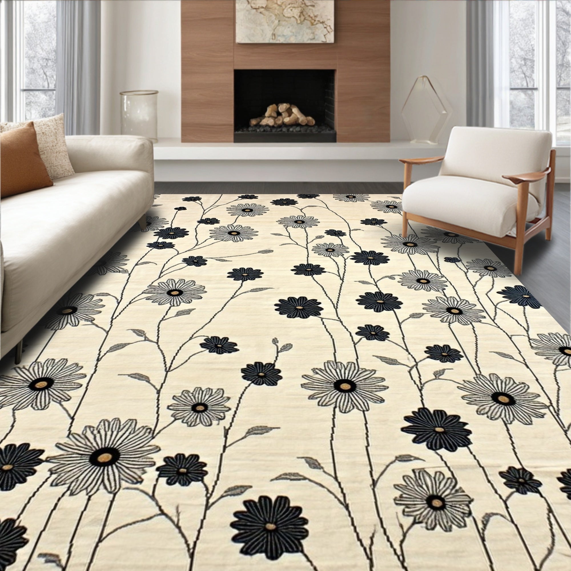 Artistic Daisy Bloom Entry With Modern Black Accent Floral Design(Beige)