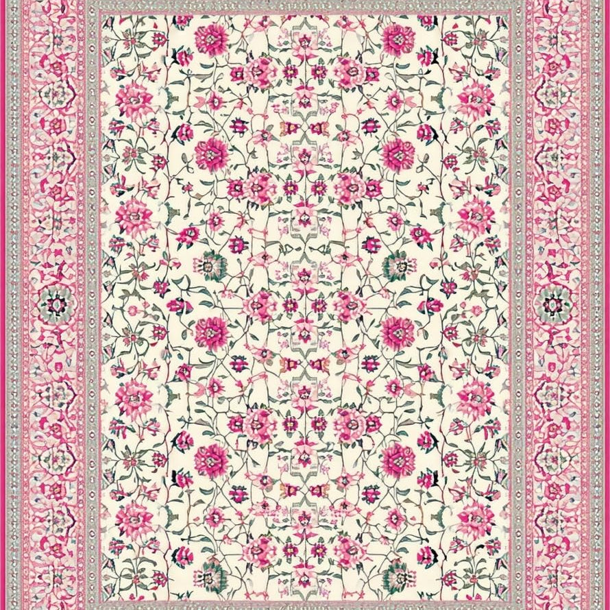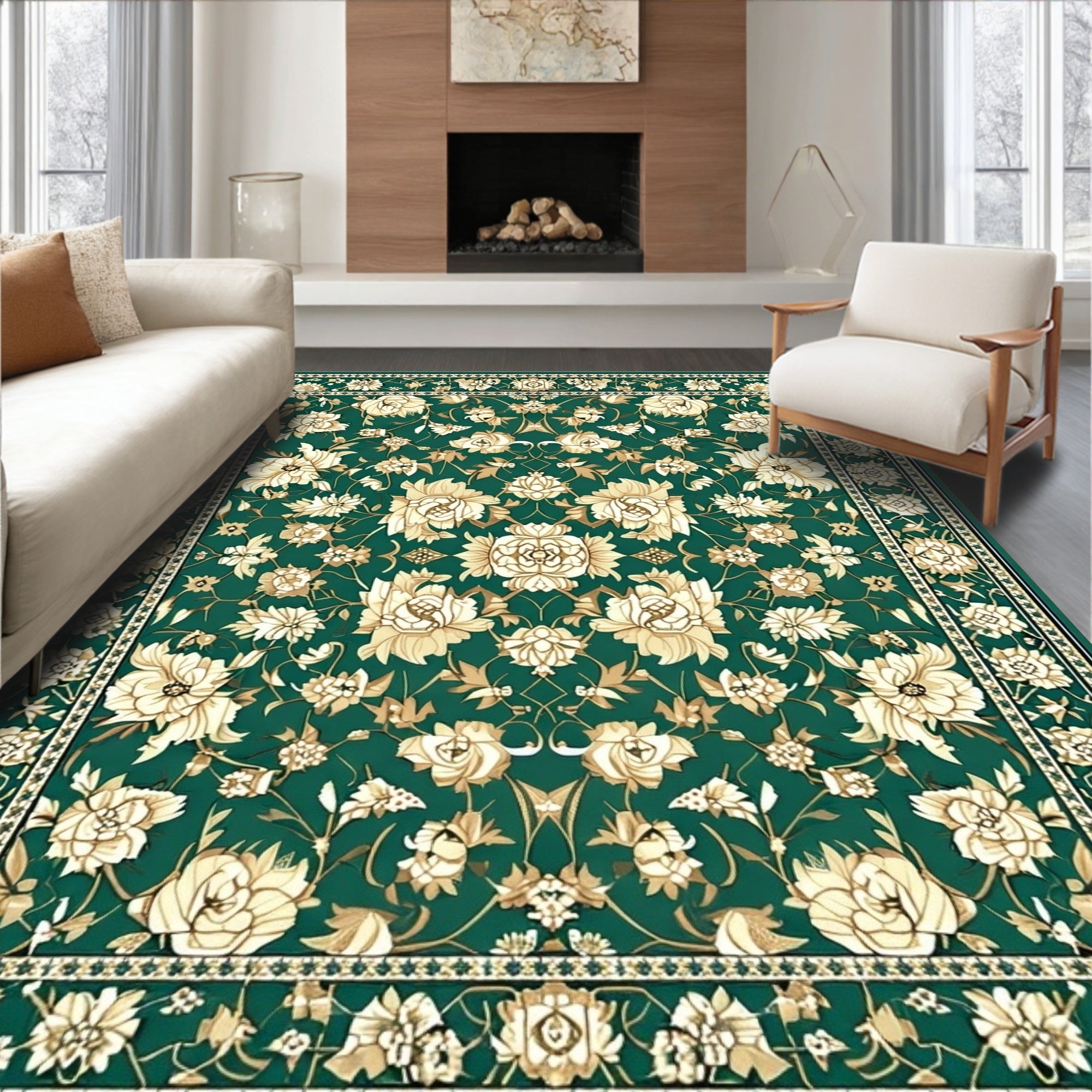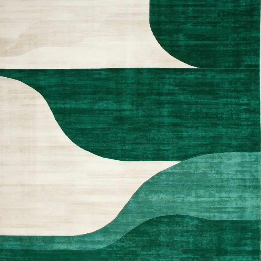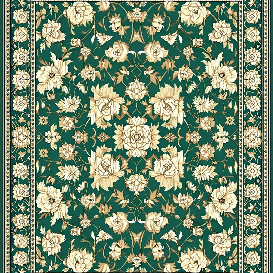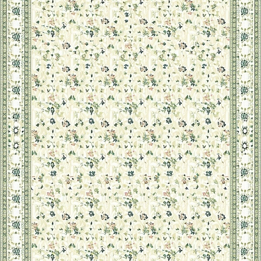 Green & Beige Area Low Pile with Subtle Floral Motifs(Beige)