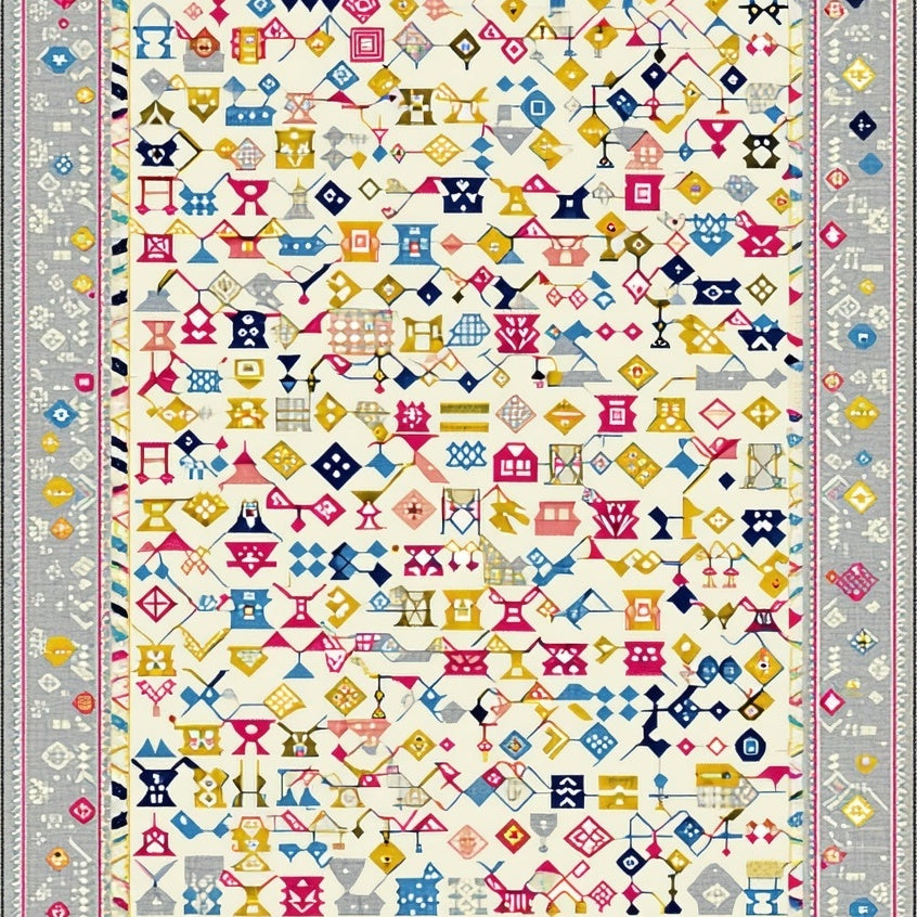 Grey Tentacle Mosaic Rug with Stylized Octopus Motifs and Geometric Flair(White)