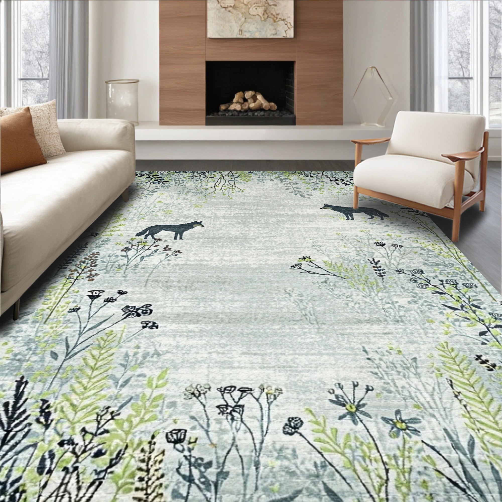 Grey Wolf Rug Wildflowers Weeds Pattern Floor Mat Contemporary Carpet(Gray)