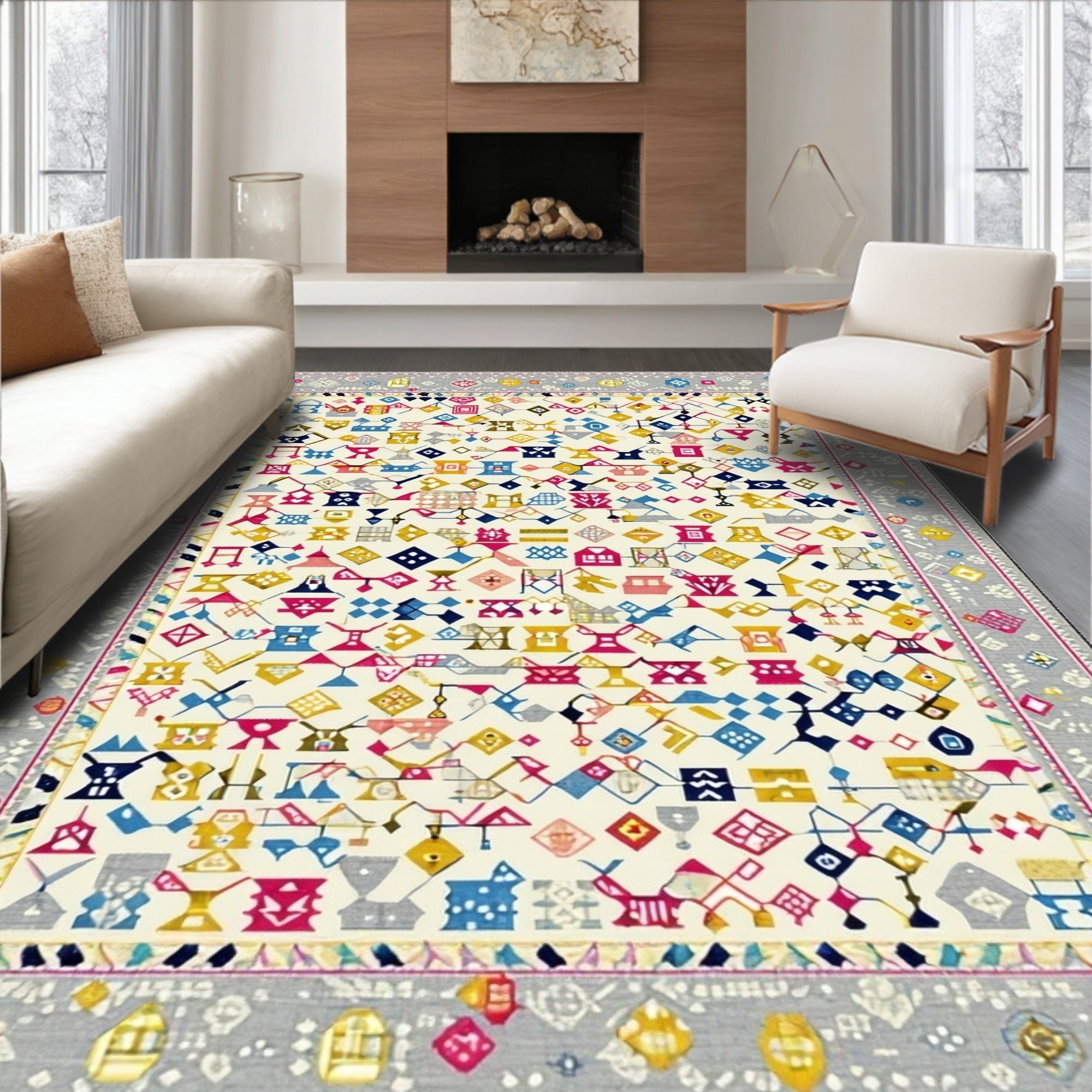 Grey and Beige Multi Colored Area with Whimsical(Beige)
