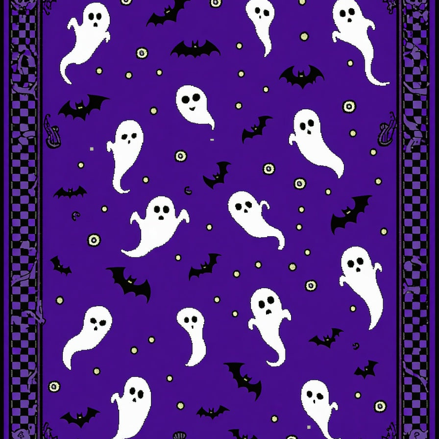 Halloween Haunt Rug Set Ghostly Coir Mat & Black Plaid Entryway Carpet Decor(Purple)