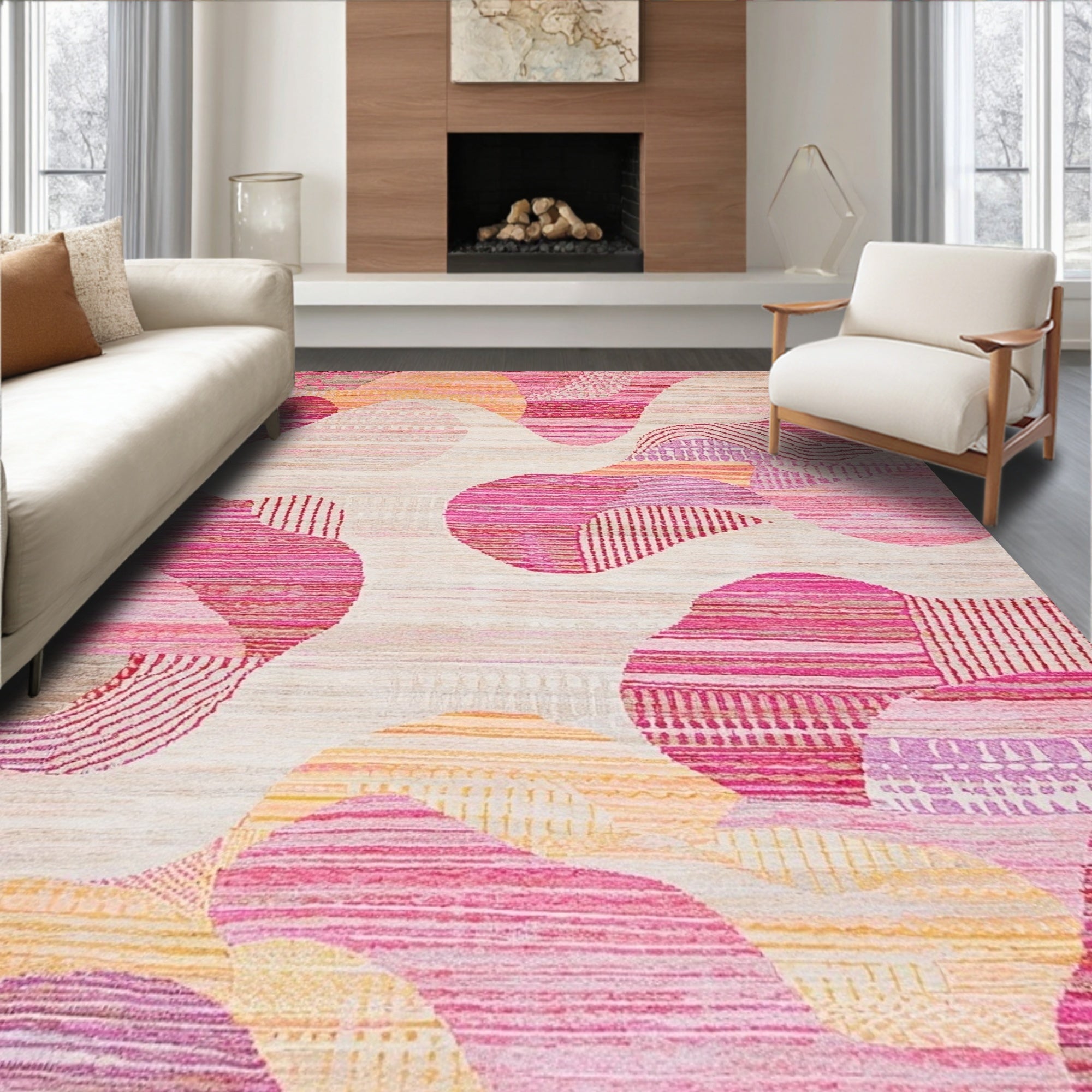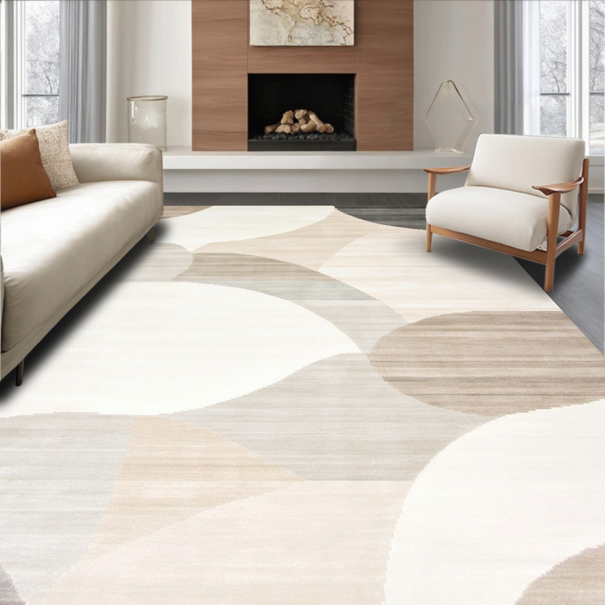 Half Circle Area Modern Minimalist Curved Line Non Skid(Beige)