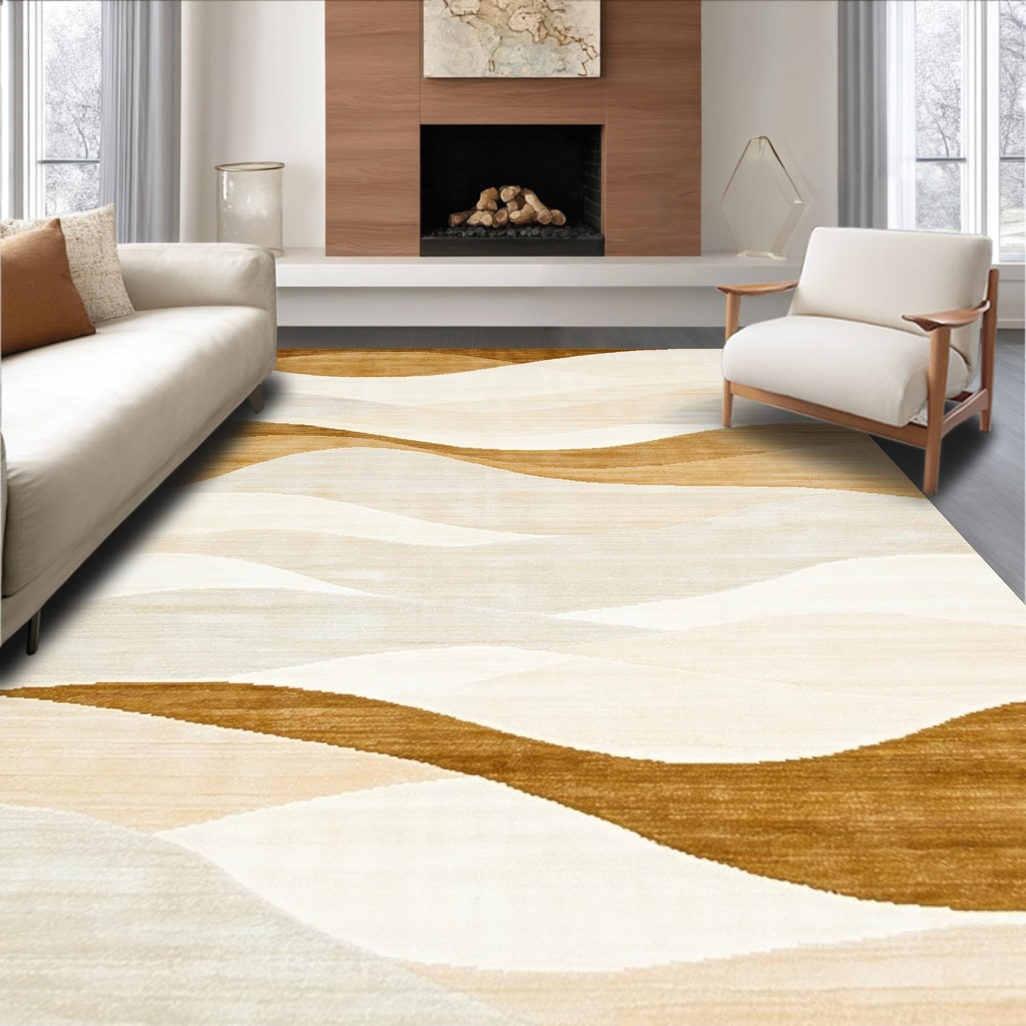 Handcrafted Textured with Wave Lines and Muted Sand Color Palette(Beige)