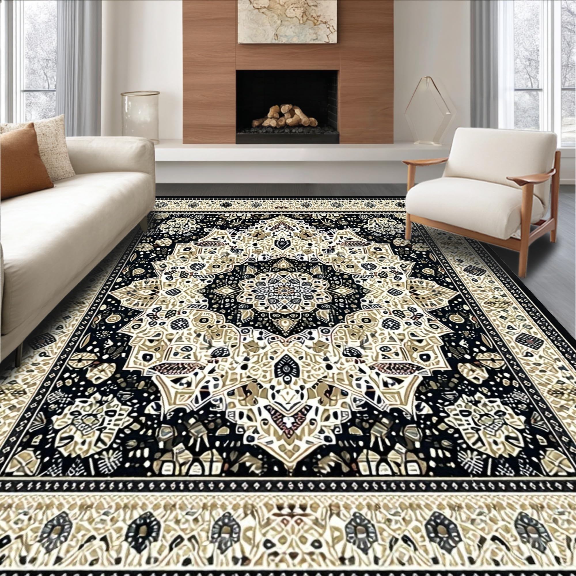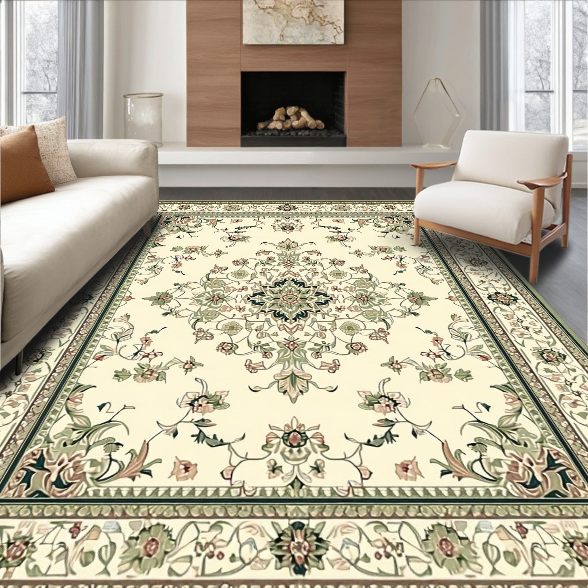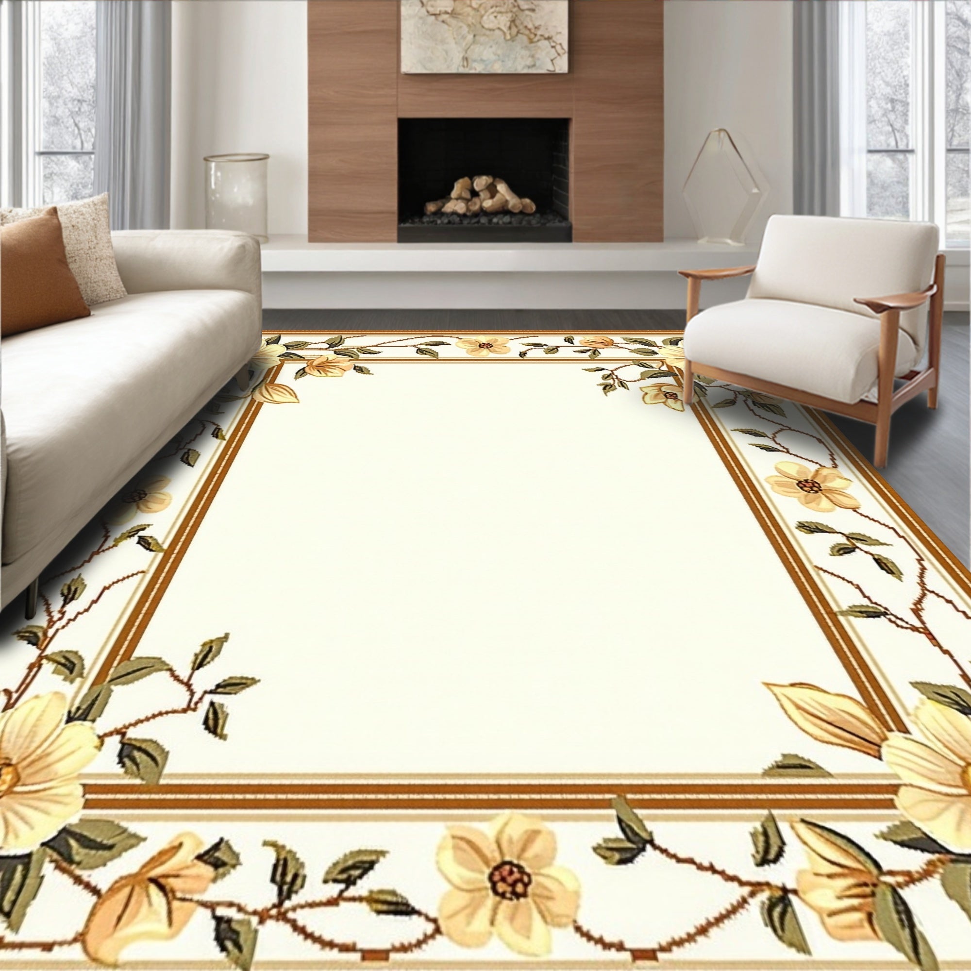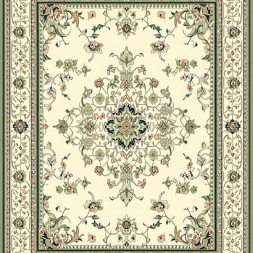 Handcrafted Vintage Inspired Area with Classical Floral Beige(Beige)