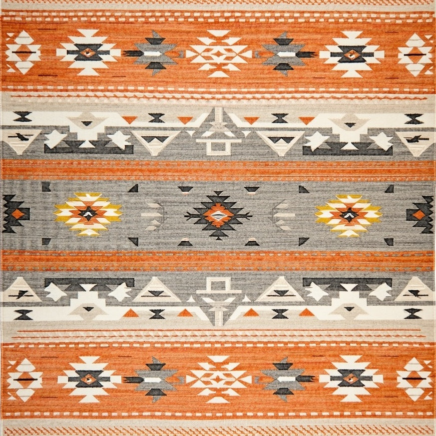 Handwoven Style Area Multicolored Southwestern Geometric Design(Orange)