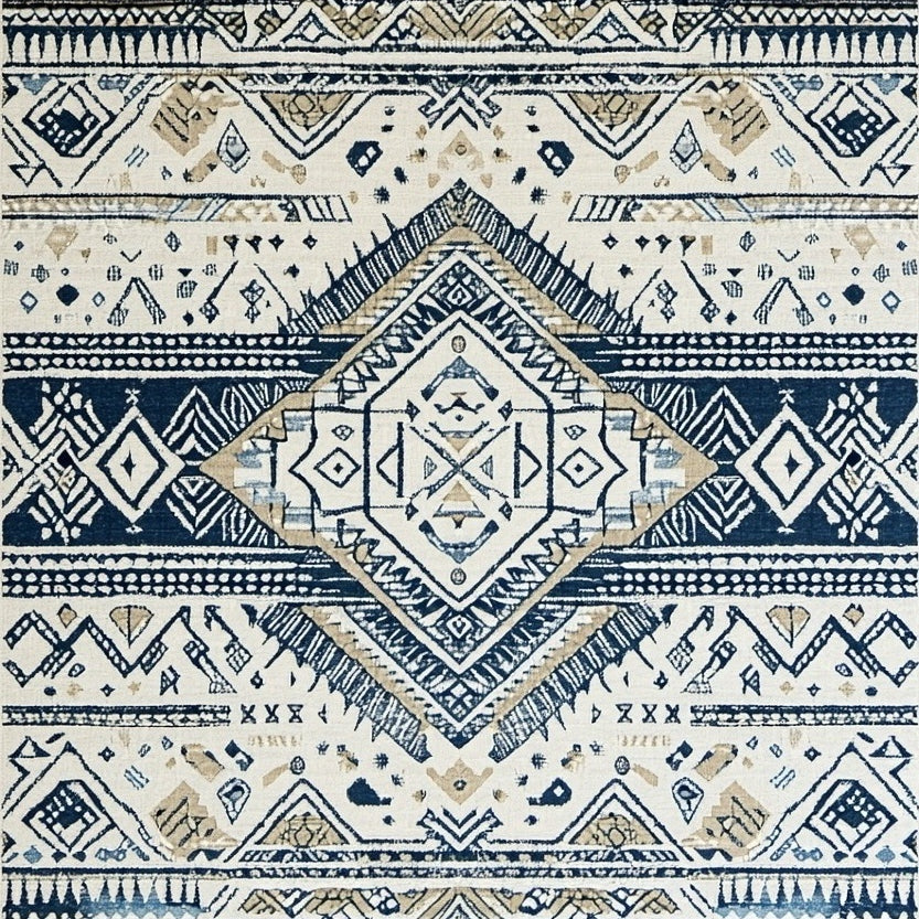 Handcrafted Loop Pile Featuring Subtle Beige and Blue Tones(Blue)