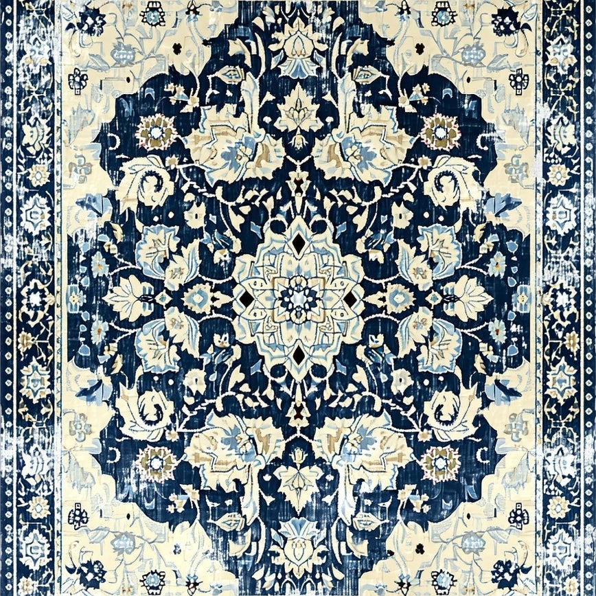 Heirloom Collection Distressed Area with Classic Motifs(Blue)