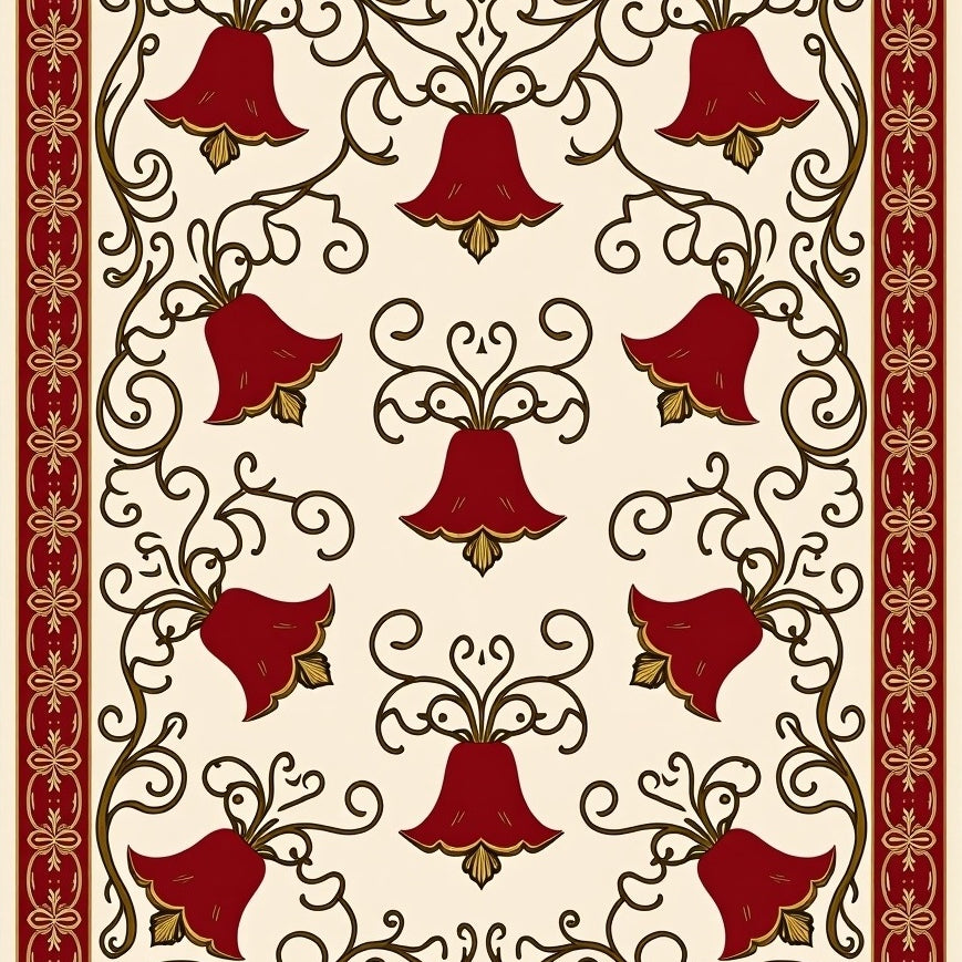 Holiday Chime Design Featuring Stylized Bells and Flourishes(Red)